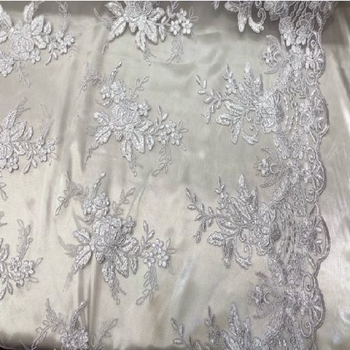 1 Yard Premium Sequin Lace Fabric with Embroidered Cord Mesh and Double Scalloped Border 51" Width