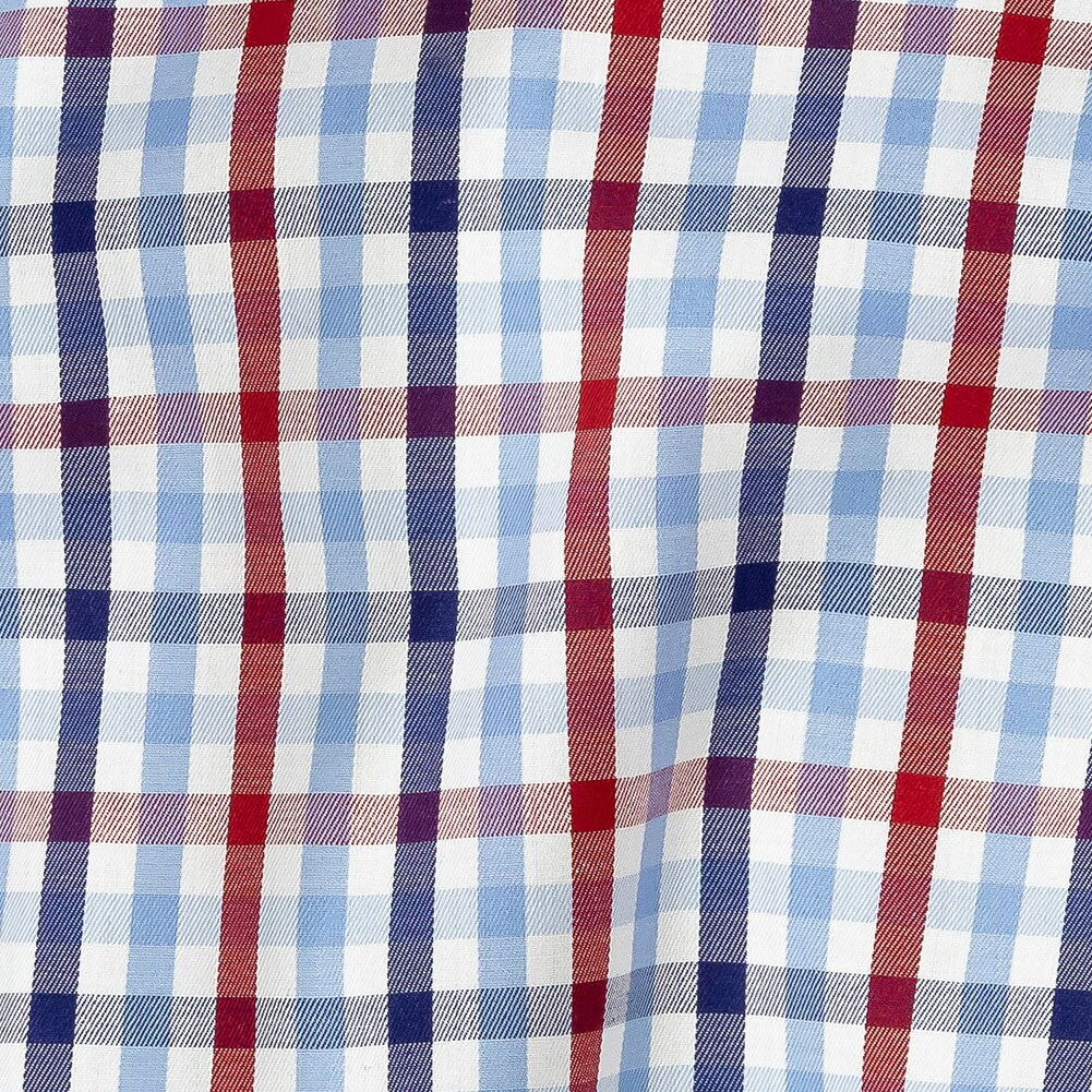 1 Yard Premium Tomato Puree White and Blue Medium Tattersall Checkered Cotton Shirting Fabric