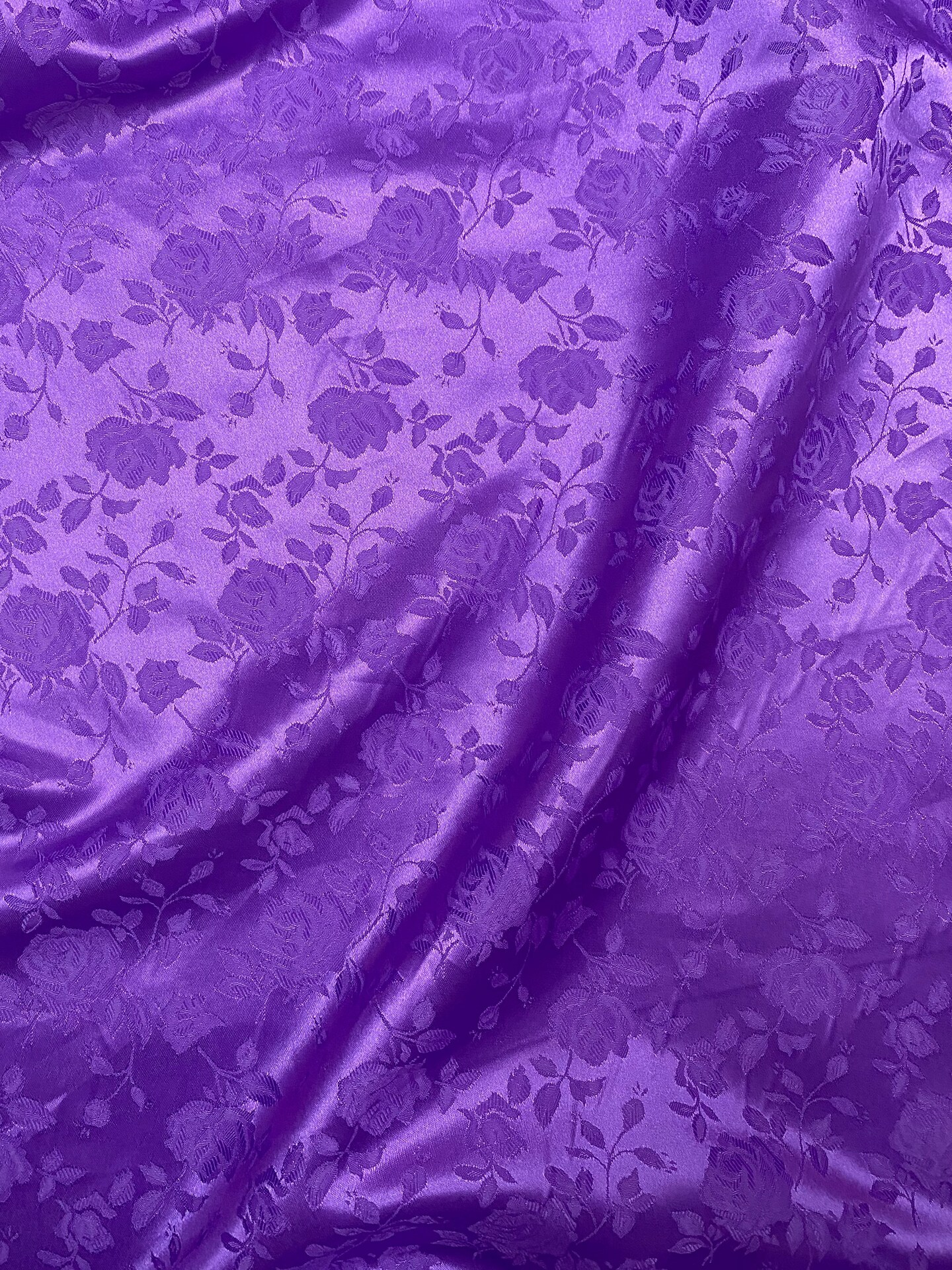 1 Yard Purple Jacquard Satin Reversible Fabric Tablecloth Overlay Curtain Fabric 58/60 Inches Wide