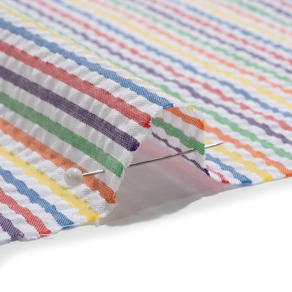 1 Yard Rainbow White Candy Striped Summer Cotton Polyester Seersucker