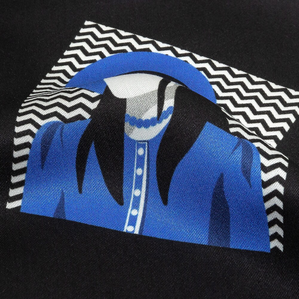 1 Yard Rayon Challis Fabric Blue and Black Talking Heads In the Blues Print 55 inch Width