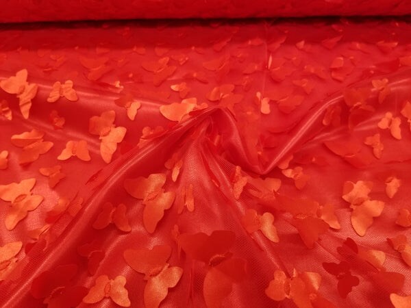 1 Yard Red 3D Butterfly Embroidered Mesh Tulle Fabric for Dress Decor