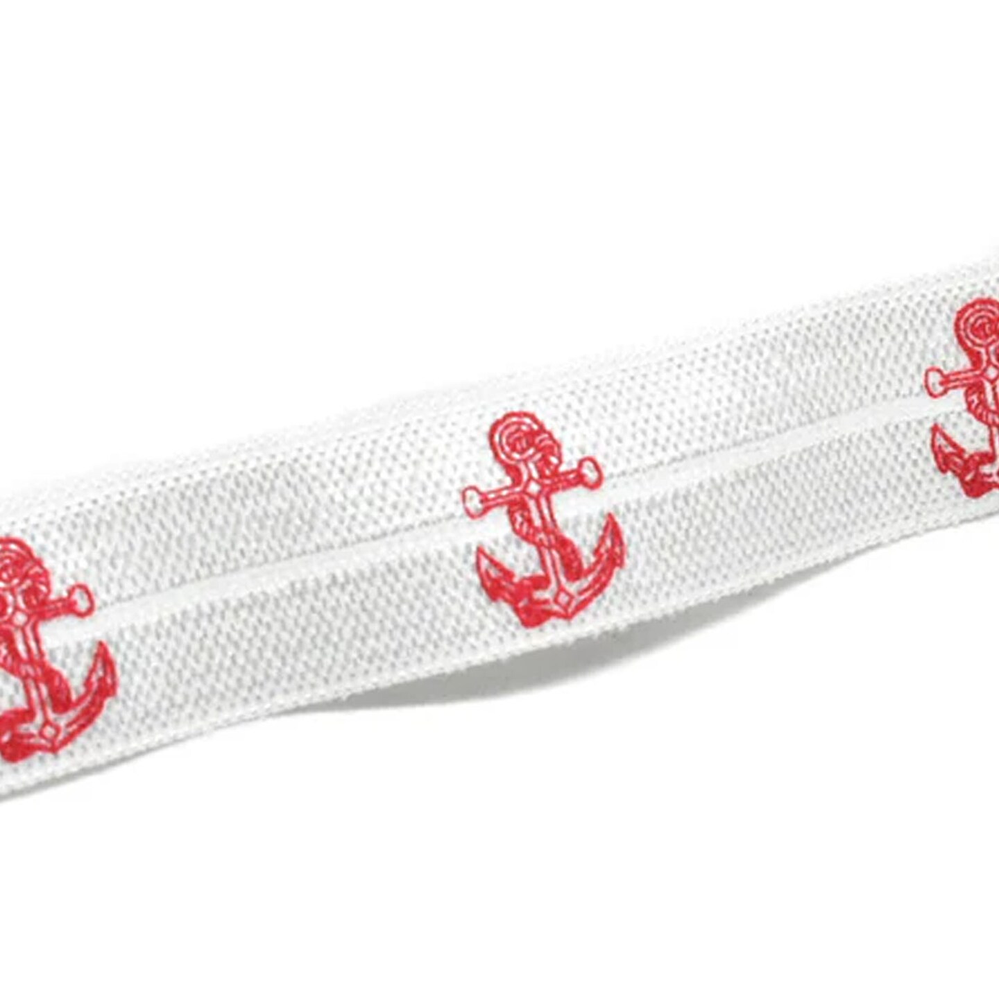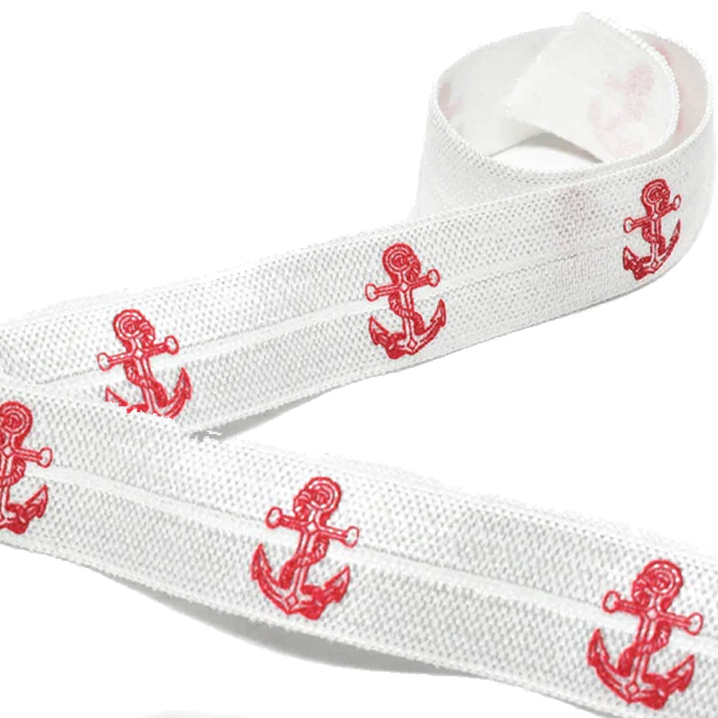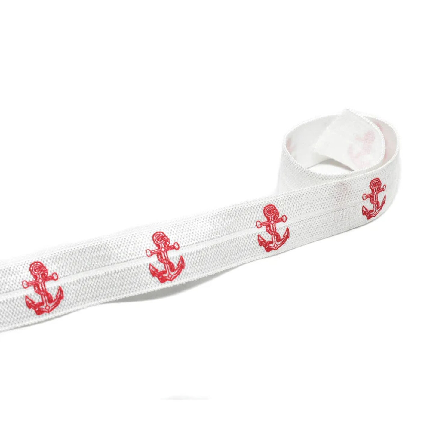 1 Yard Red Anchor Print Fold Over Elastic Stretch DIY Craft Ribbon 0.63 inch Width