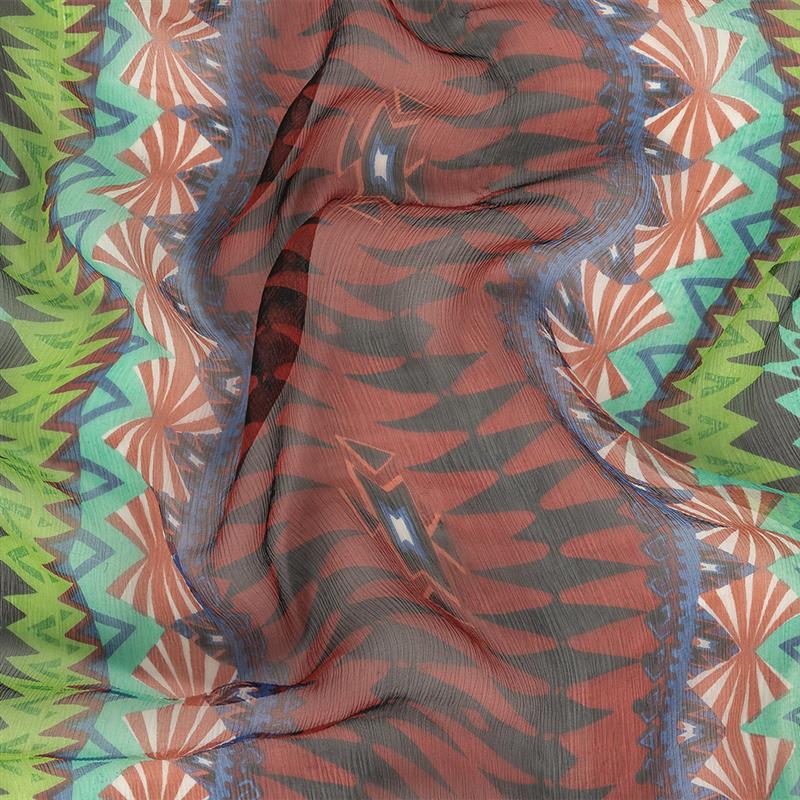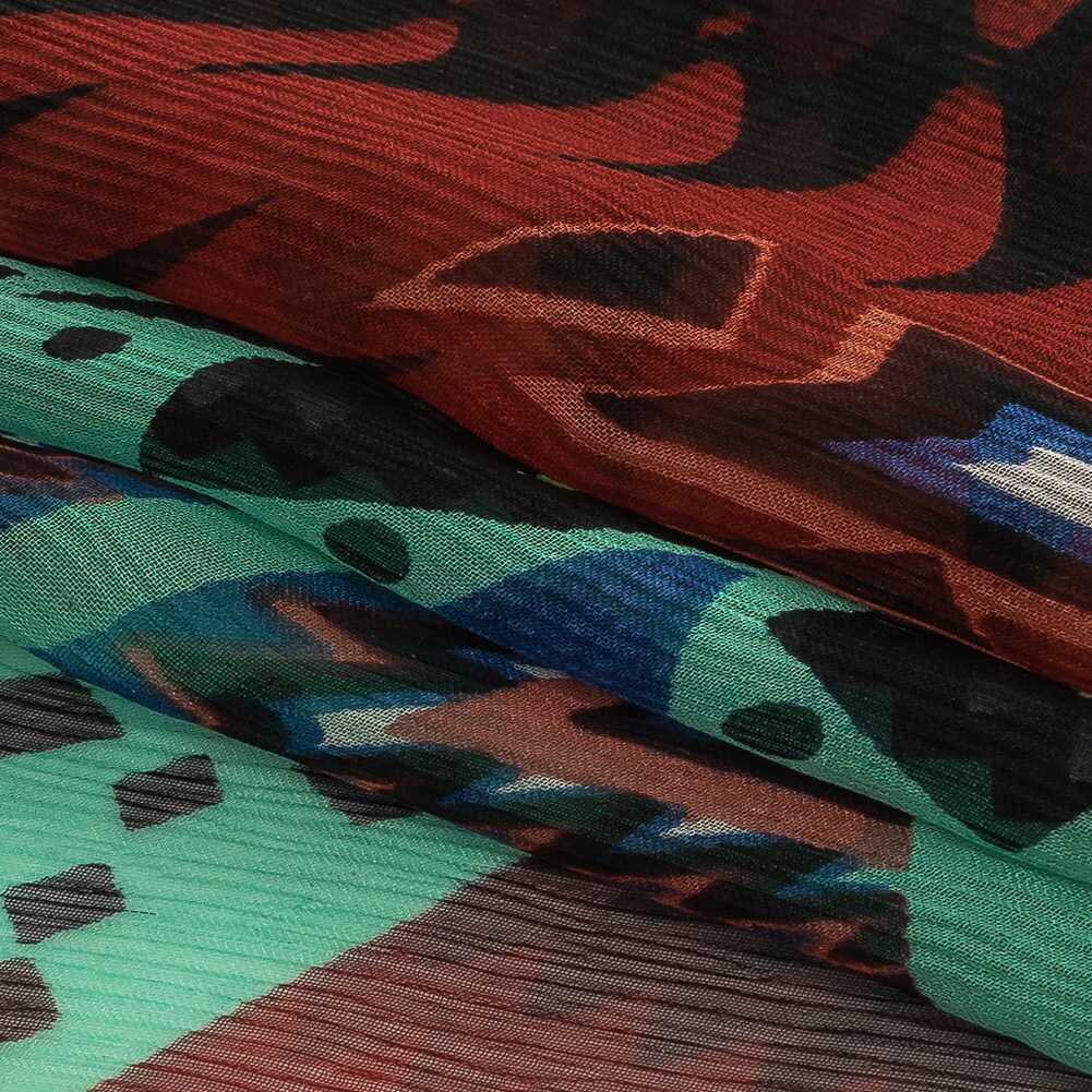 1 Yard Red Aqua Green Geometric Stripes Crinkled Silk Chiffon 44 inch Width