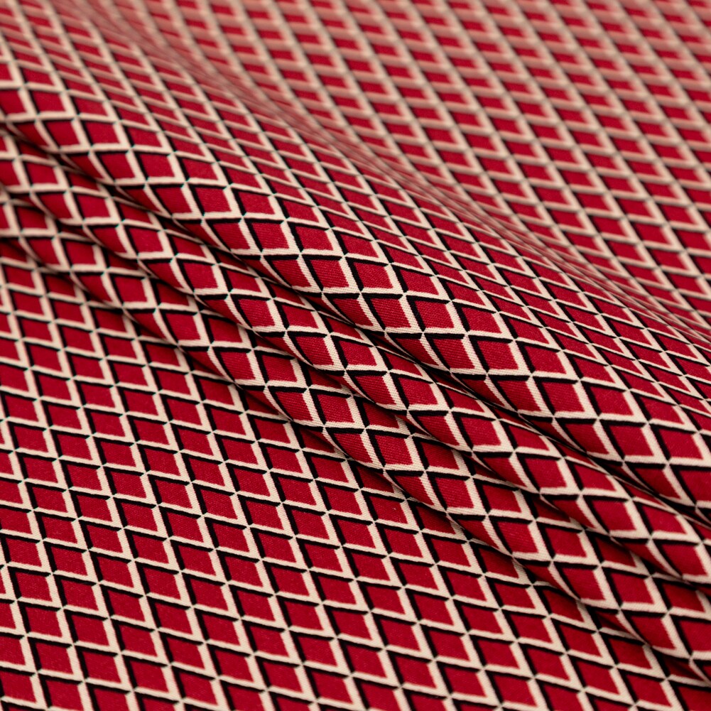1 Yard Red Beige Geometric Stretch Cotton Print Fabric Medium Weight Durable