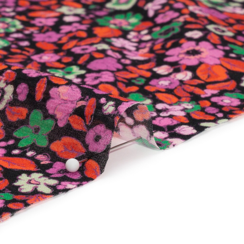 1 Yard Red Pink Green Floral Crinkled Cotton Gauzy Lightweight Fabric