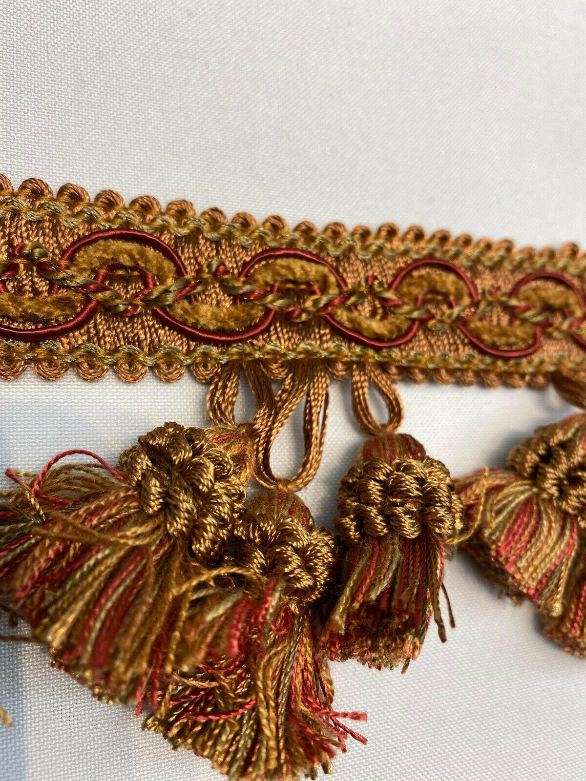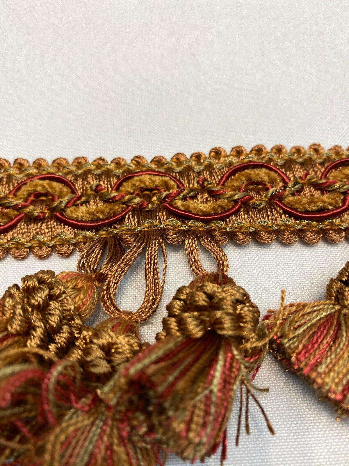 1 Yard Red Rust Gold Tassel Fringe Trim for Draperies and Home Decor 3.5 Inch Long