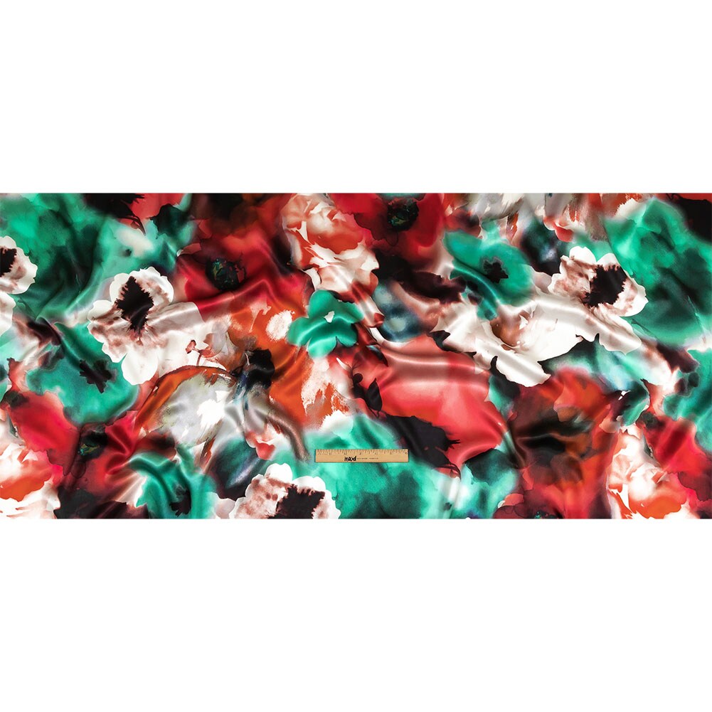 1 Yard Red Turquoise White Watercolor Floral Silk Charmeuse Luxury Fluid and Luxurious Italian Fabric 53 Inches Wide