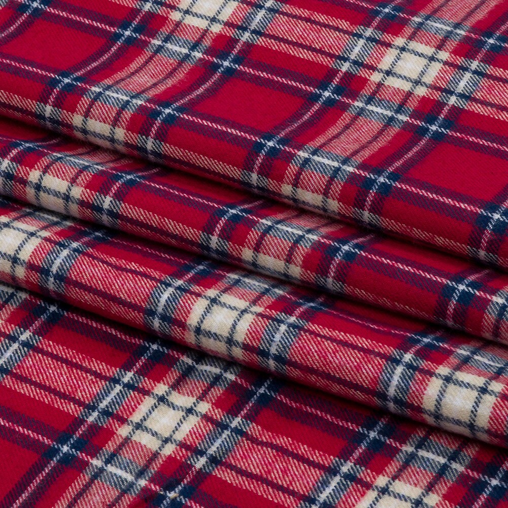 1 Yard Red White and Blue Plaid Cotton Flannel Fabric 56 inch Width