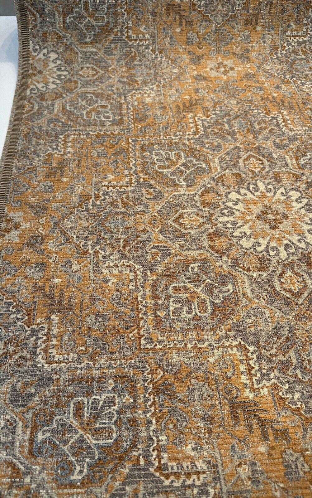 1 Yard Riggs Sienna Pecan Damask Chenille Upholstery Fabric 56 Inch Width