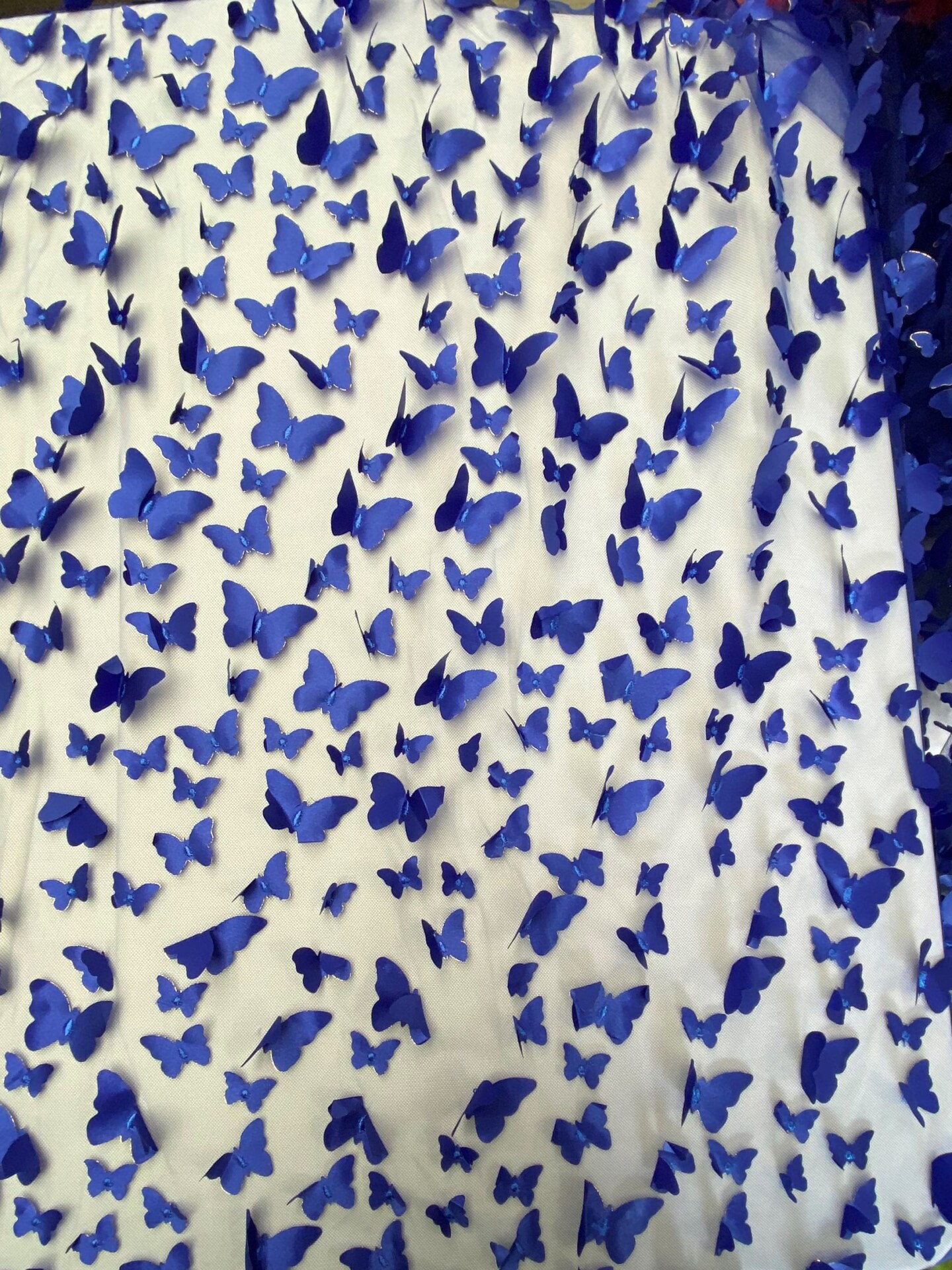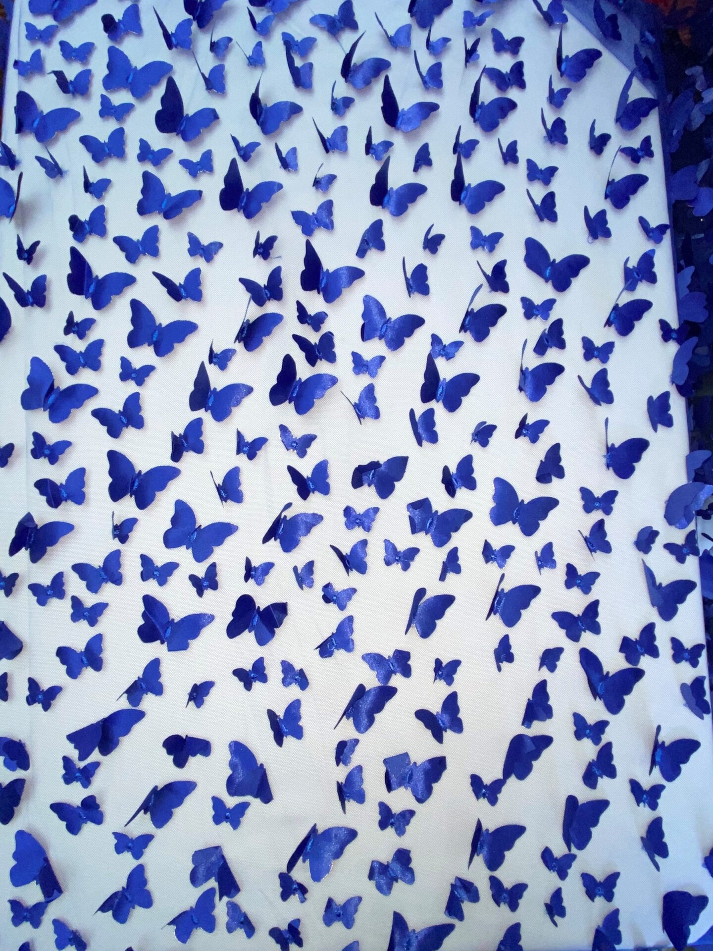 1 Yard Royal Blue 3D Butterfly Mesh Fabric with Satin Appliqués for Dresses and Décor 54 Inch Wide