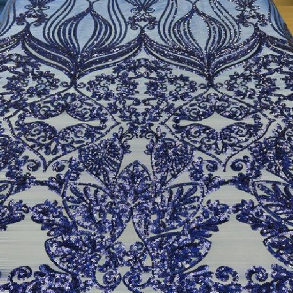 1 Yard Royal Blue Damask Embroidered Mesh Lace Fabric for Evening Gowns Bridal Dresses 48–50" Width