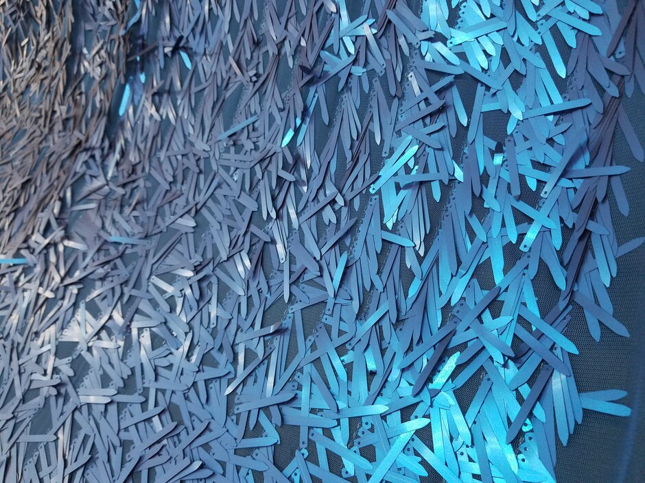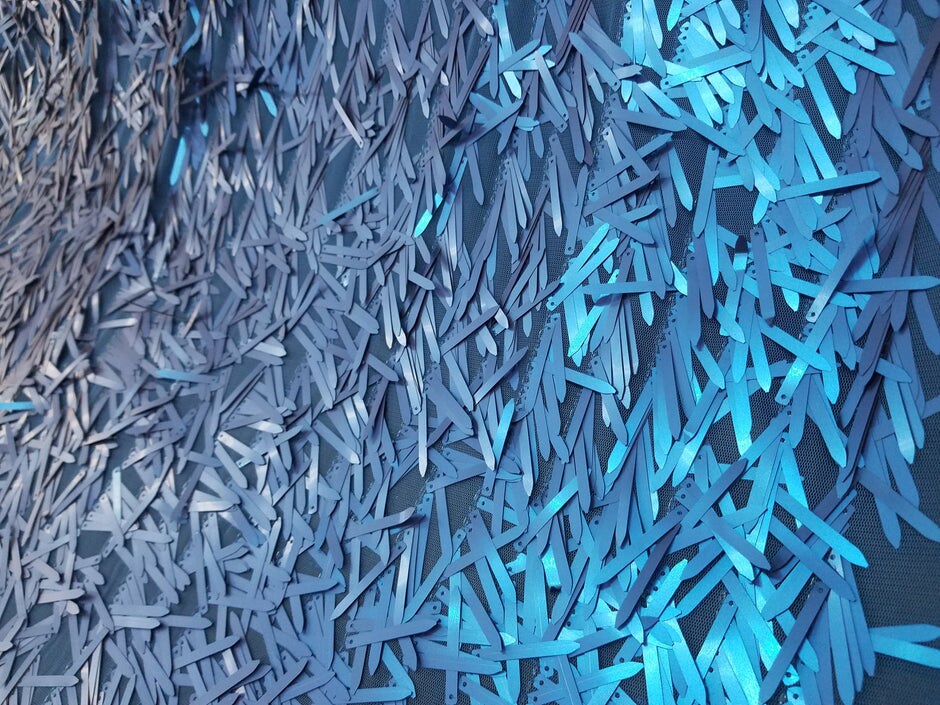 1 Yard Royal Blue/Black Long Teardrop Sequins Fabric on Black Mesh 50/52 Inch Width