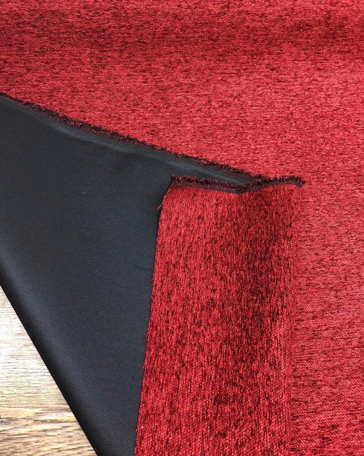 1 Yard Ruby Red Heavy Solid 100% Polyester Chenille Backed Durable Upholstery Decorative Fabric