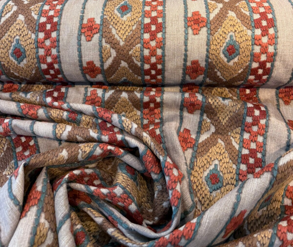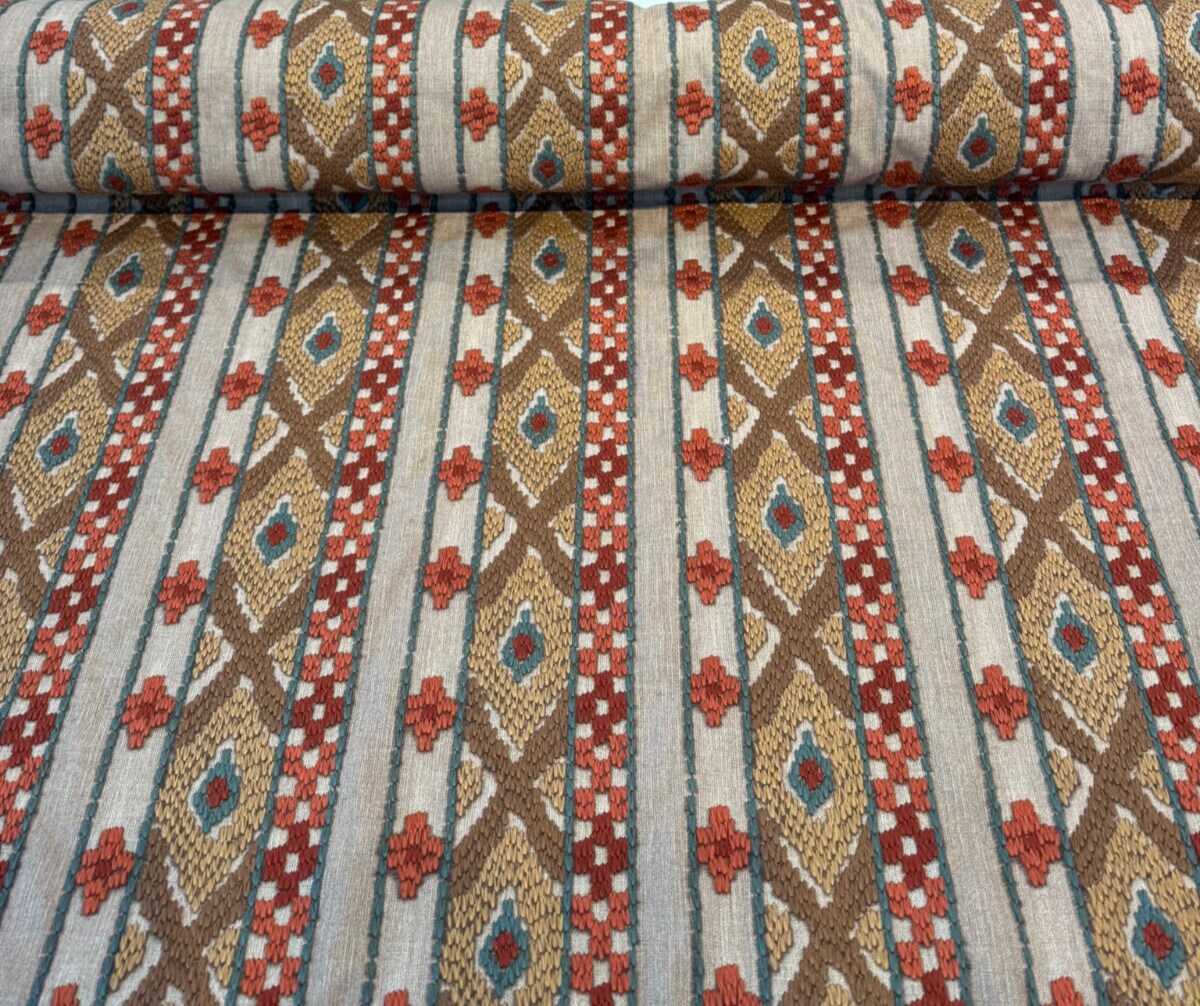 1 Yard Rust Tranquil Embroidered Drapery Upholstery Fabric 53.25 Inches Wide