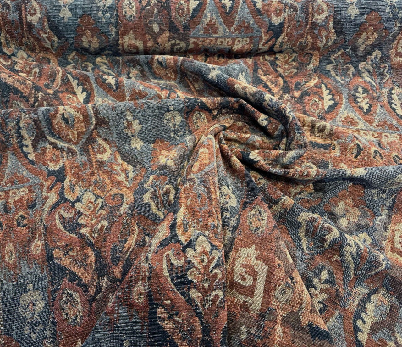 1 Yard Rust Tribal Chenille Upholstery Fabric Heavyweight Durable 70% Polyester Chenille & 30% polyester 56 Inches Width