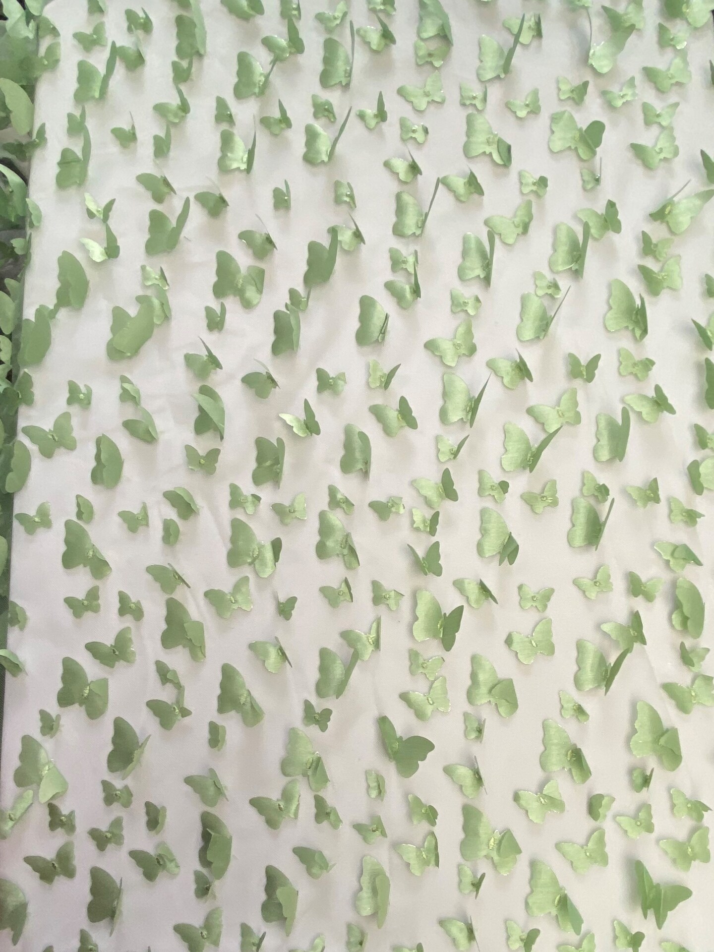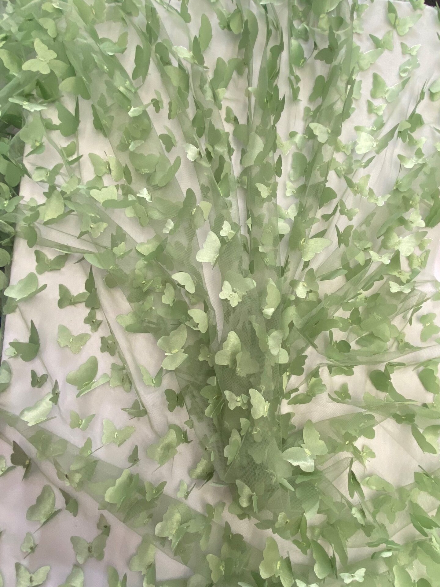 1 Yard Sage Green 3D Butterfly Stretch Mesh Fabric with Satin Appliqués for Dresses and Crafts 54 Inch Wide