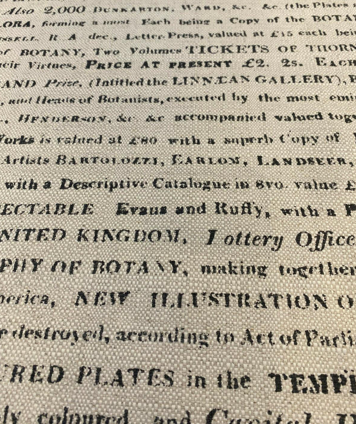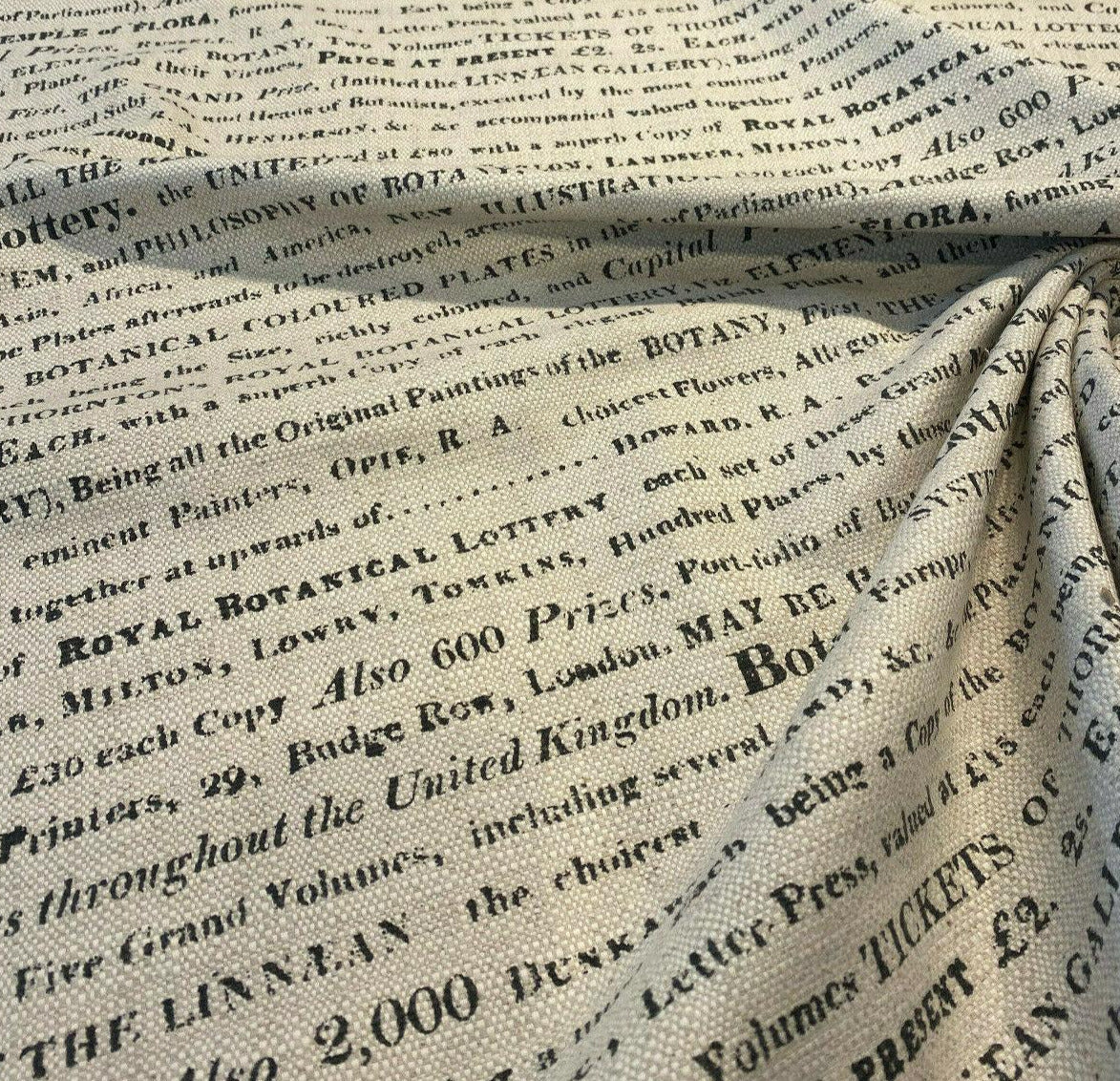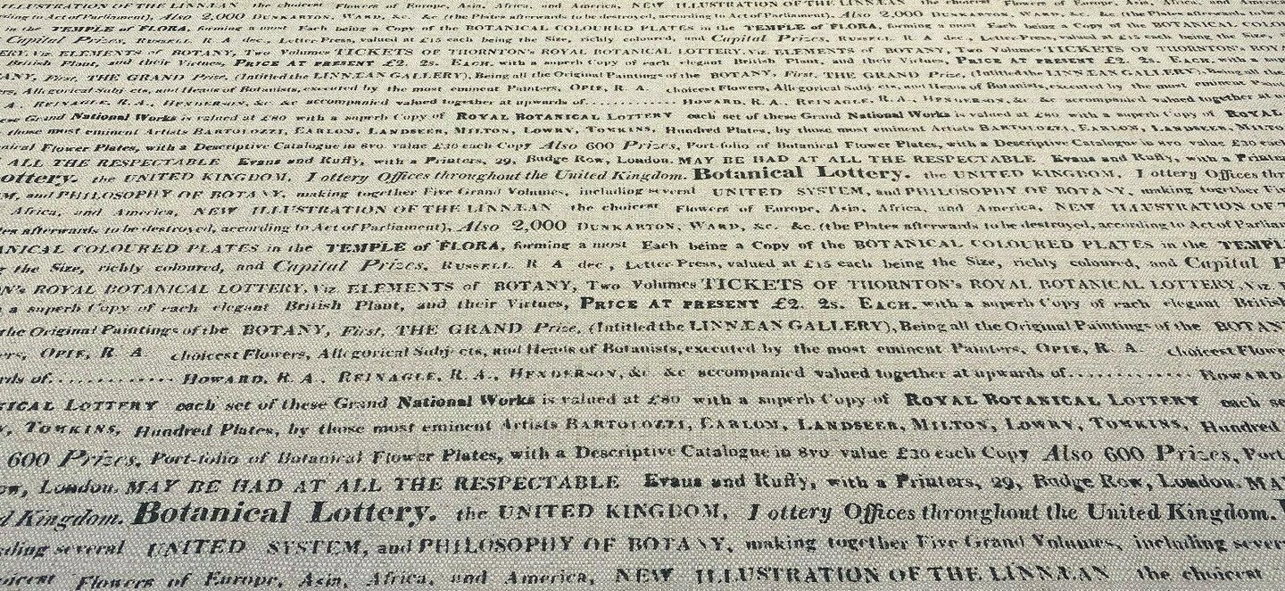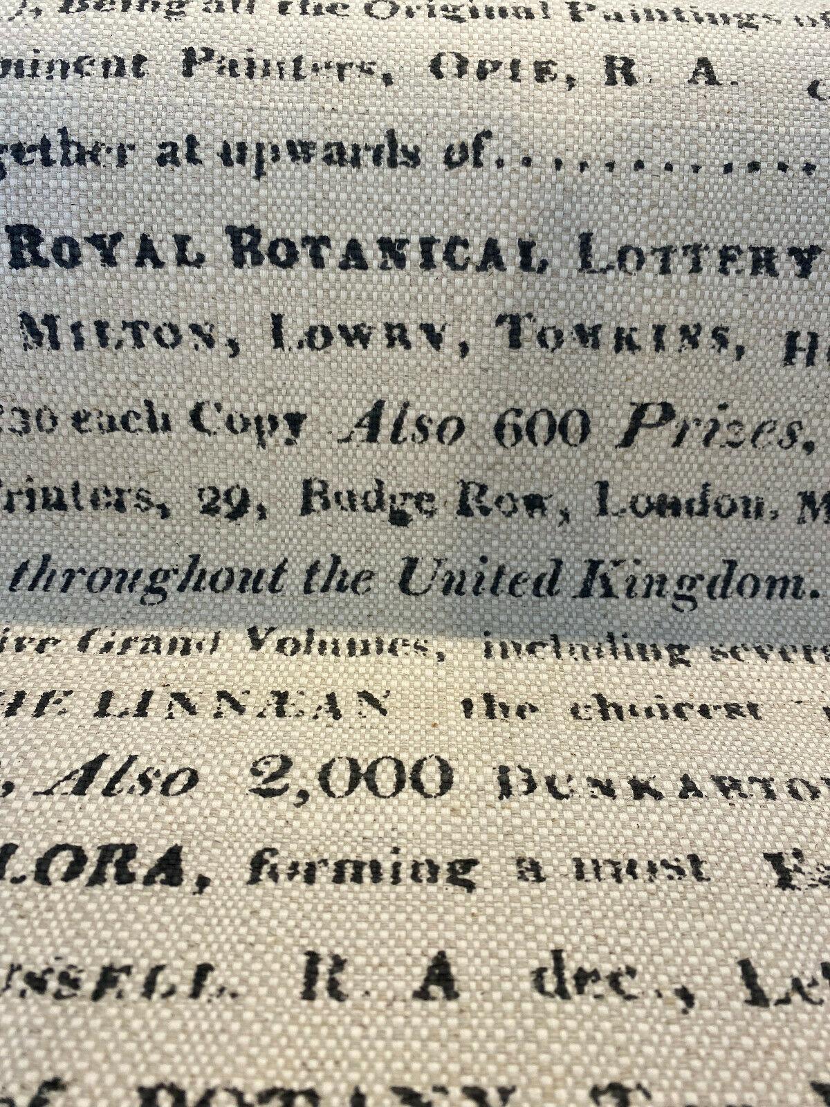 1 Yard Script Botanical Lottery Sepia Cotton Linen Upholstery Fabric 57 Inch Width