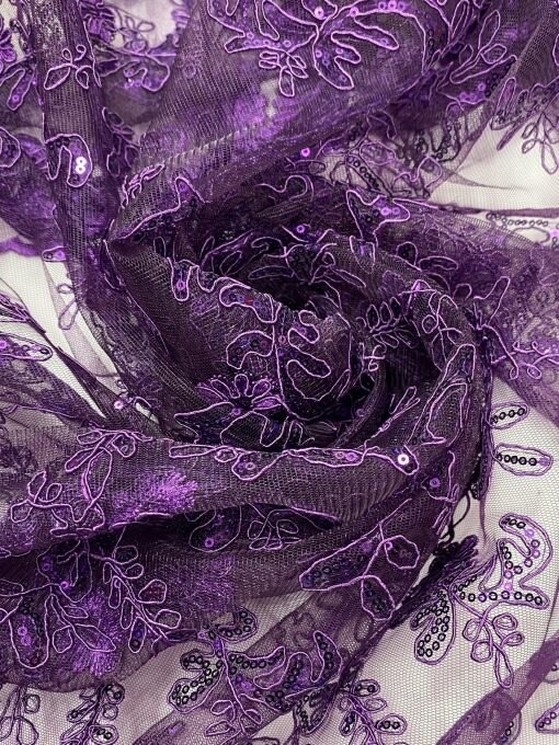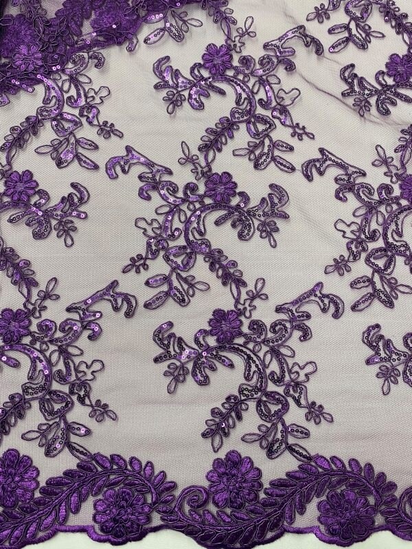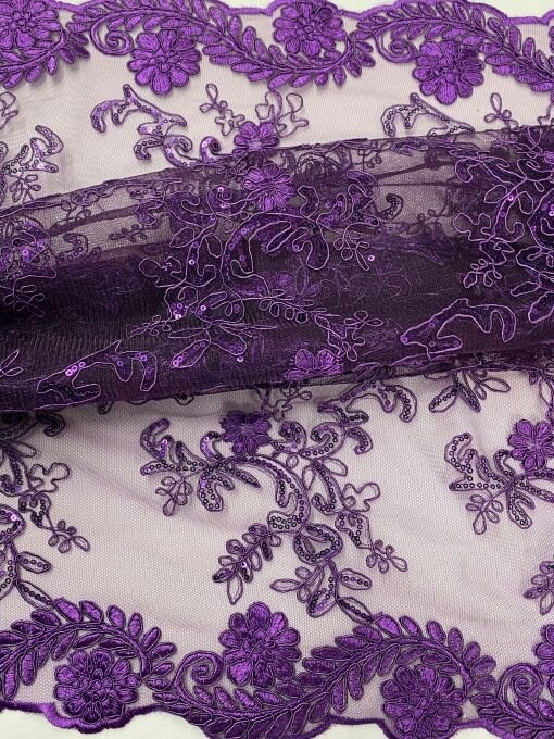 1 Yard Sequin Lace Fabric Embroidered Corded Mesh with Double Scalloped Edges 54″ Wide
