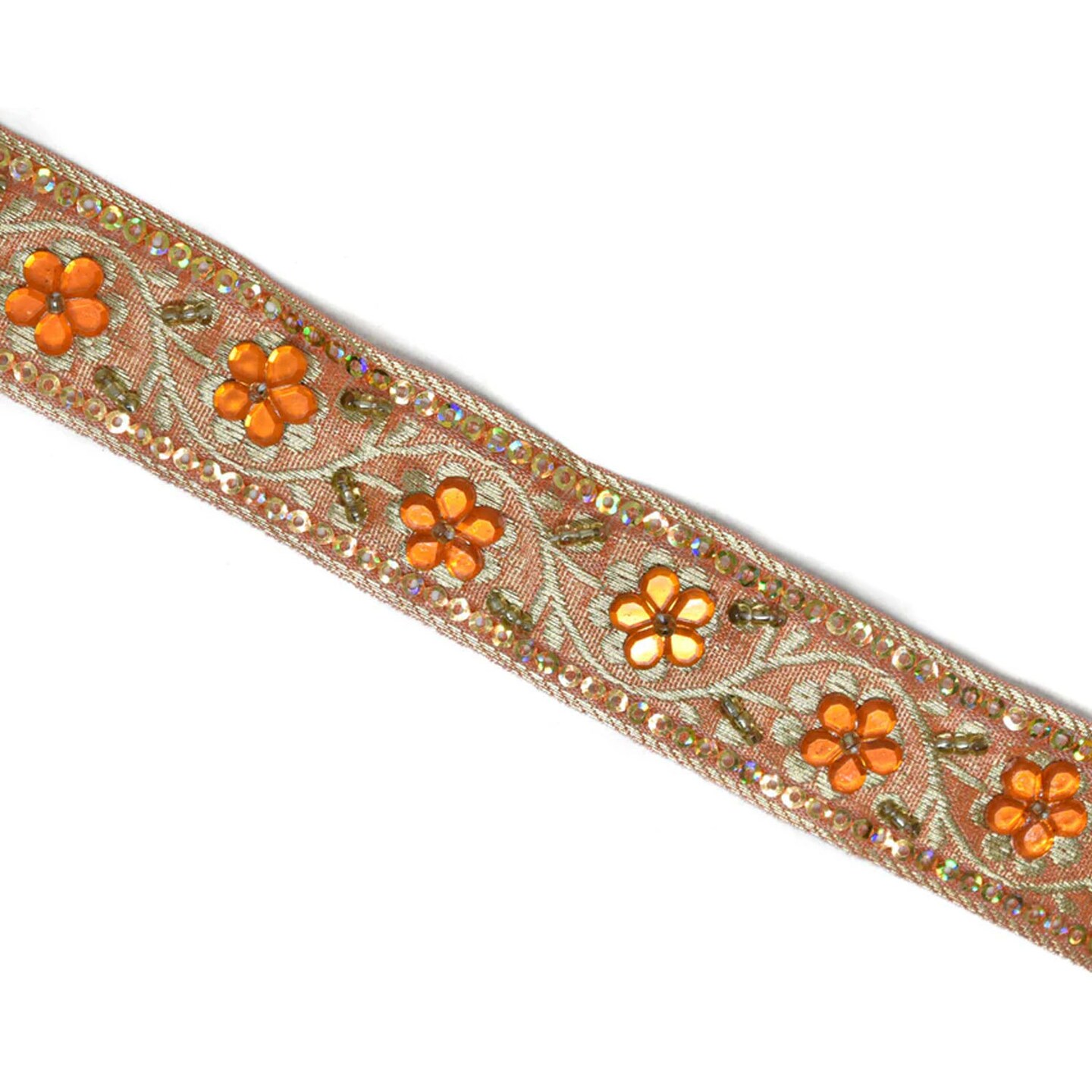 1 Yard Sequins Embroidered Floral Indian Trim Decorative Ribbon for Crafts 1 Inch Width