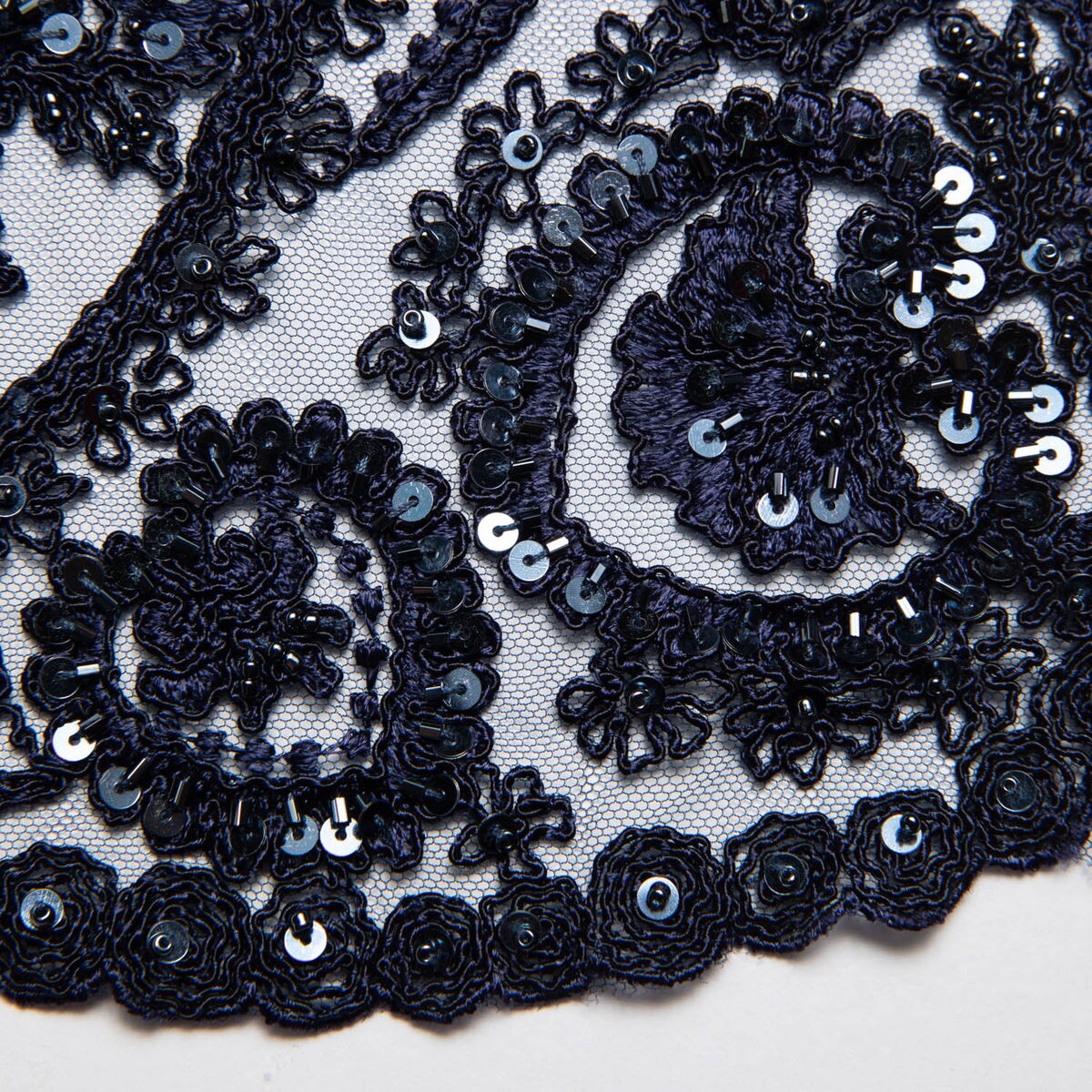 1 Yard Shimmering Tulle Lace Fabric with Sequins and Floral Embroidery 52" Width