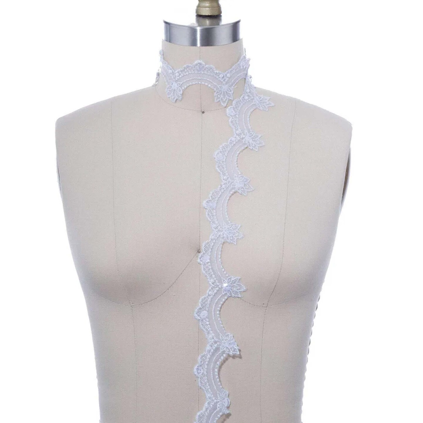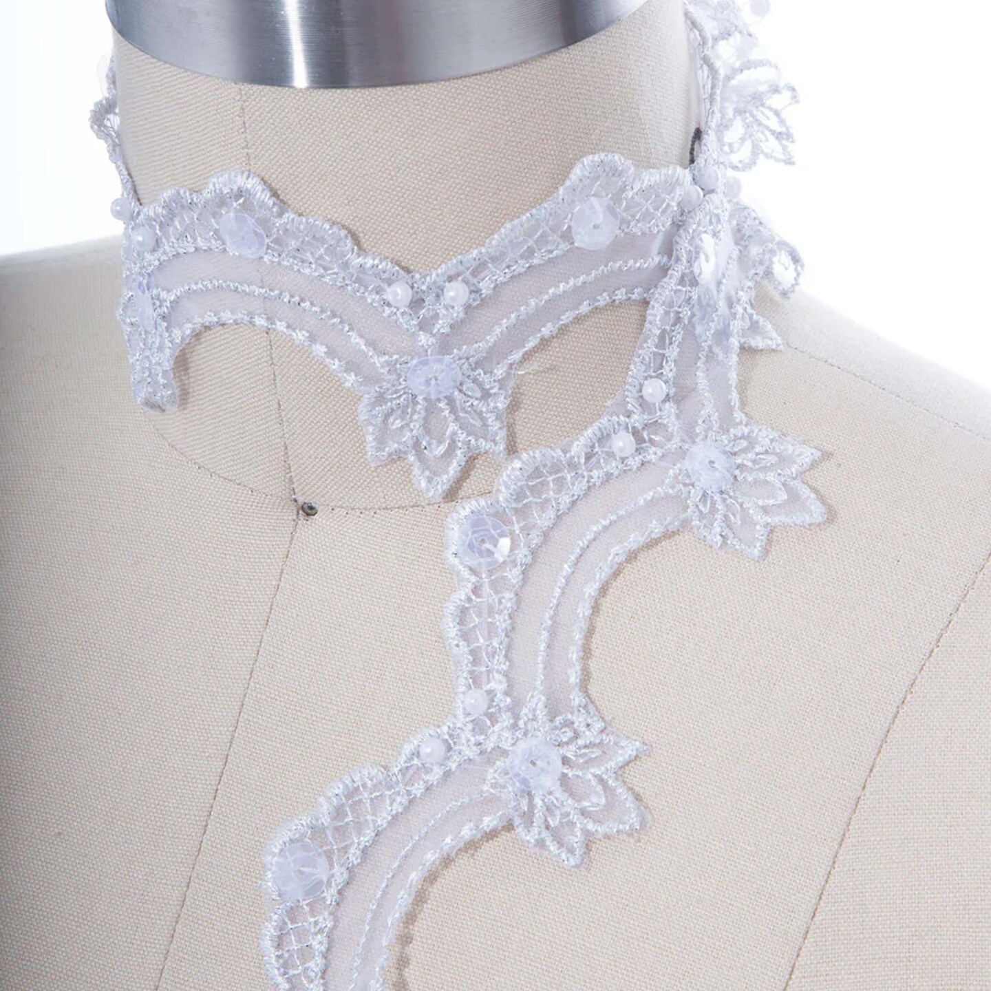 1 Yard Shimmery Silver Scalloped Sequin and Beaded Lace Trim Elegant Bridal & Formal Wear Accent
