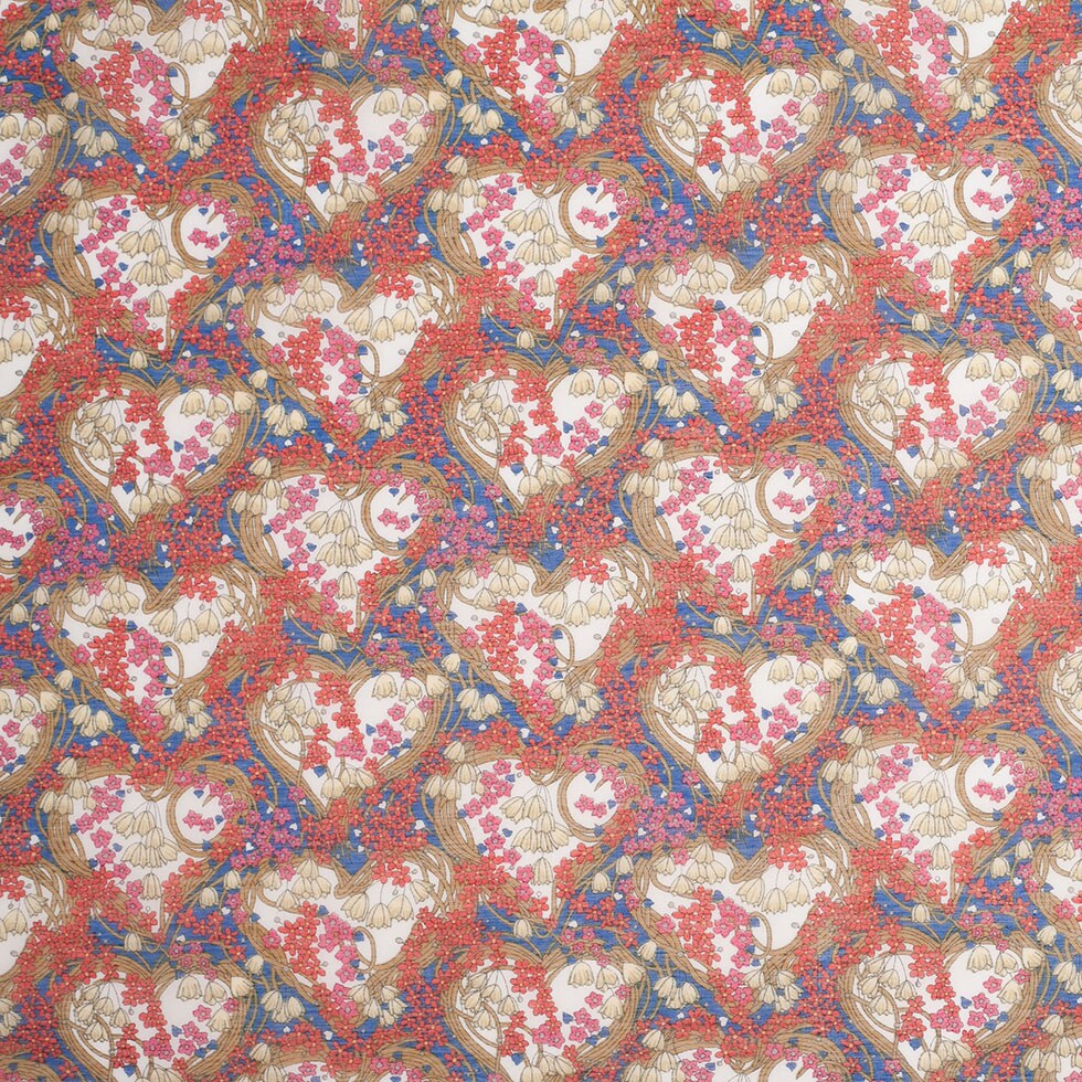 1 Yard Silk and Cotton Voile Fabric Amy Jane Blue Red Print Fabric 52 Inches Width
