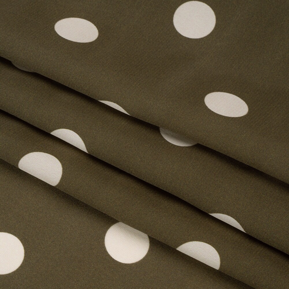 1 Yard Silk and Viscose Crepe de Chine 54" Wide Olive & Cream Polka Dot Fabric for Tops & Pajamas