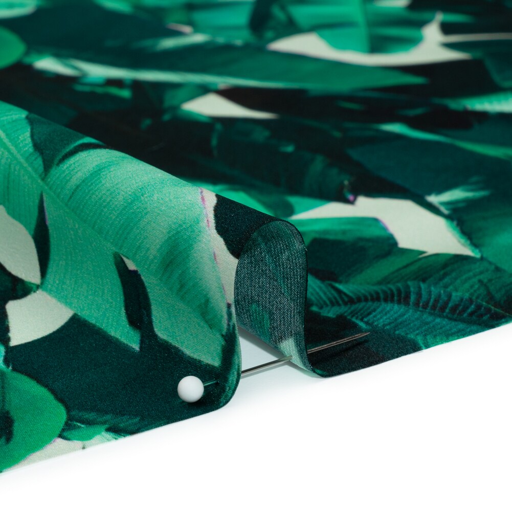 1 Yard Silk Charmeuse Fabric Dark Teal and Mint Green Tropical Leaves 44 inch Width