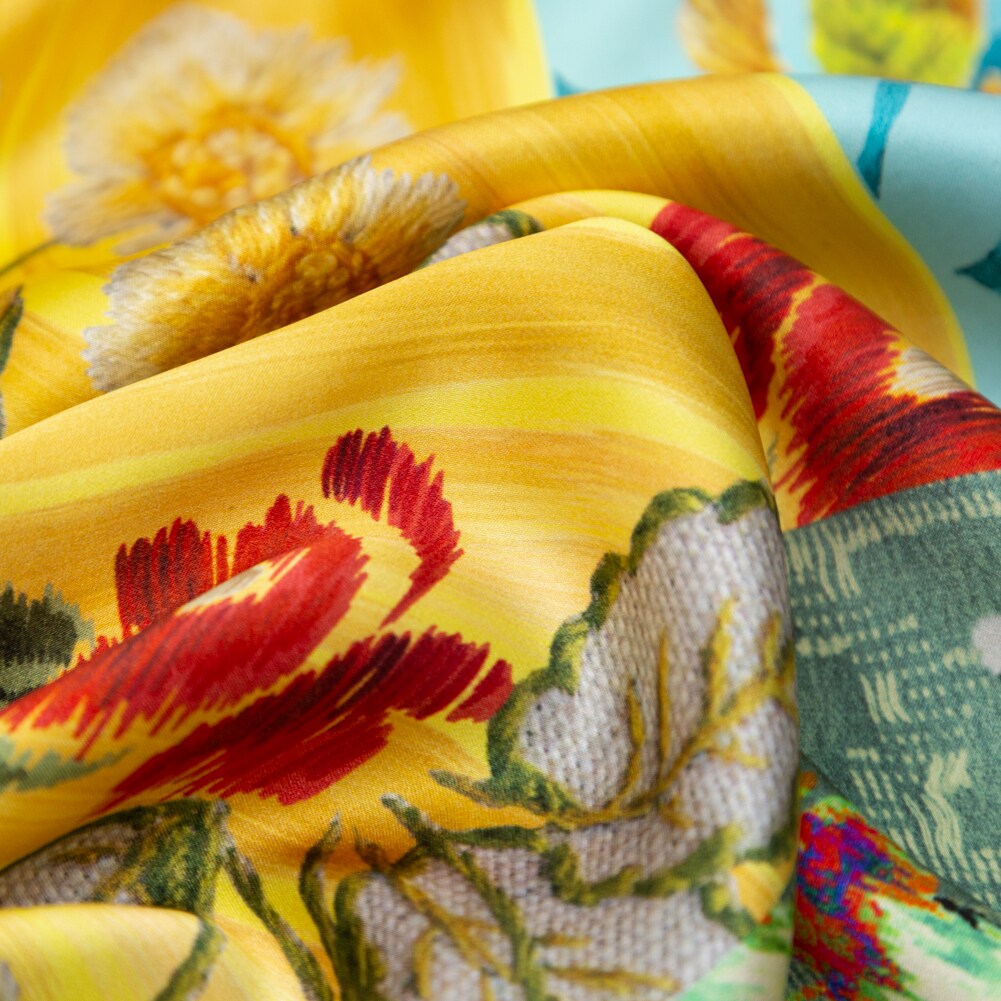 1 Yard Silk Charmeuse Italian Aqua Haze Sand Dollar Bamboo Patchwork Print, 55 Inches Wide