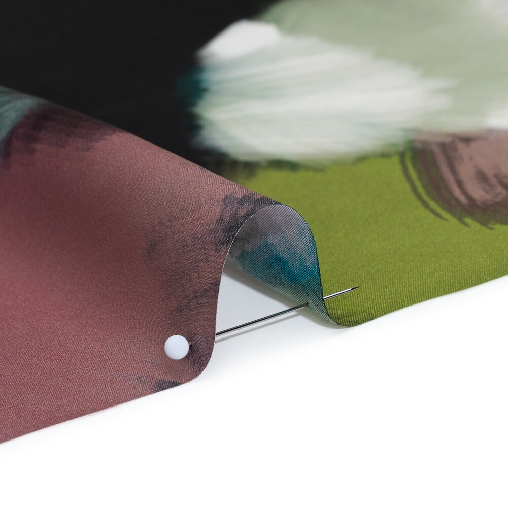 1 Yard Silk Charmeuse Print Fabric with Teal Pink and Blue Painted Bursts 53 Inch Width