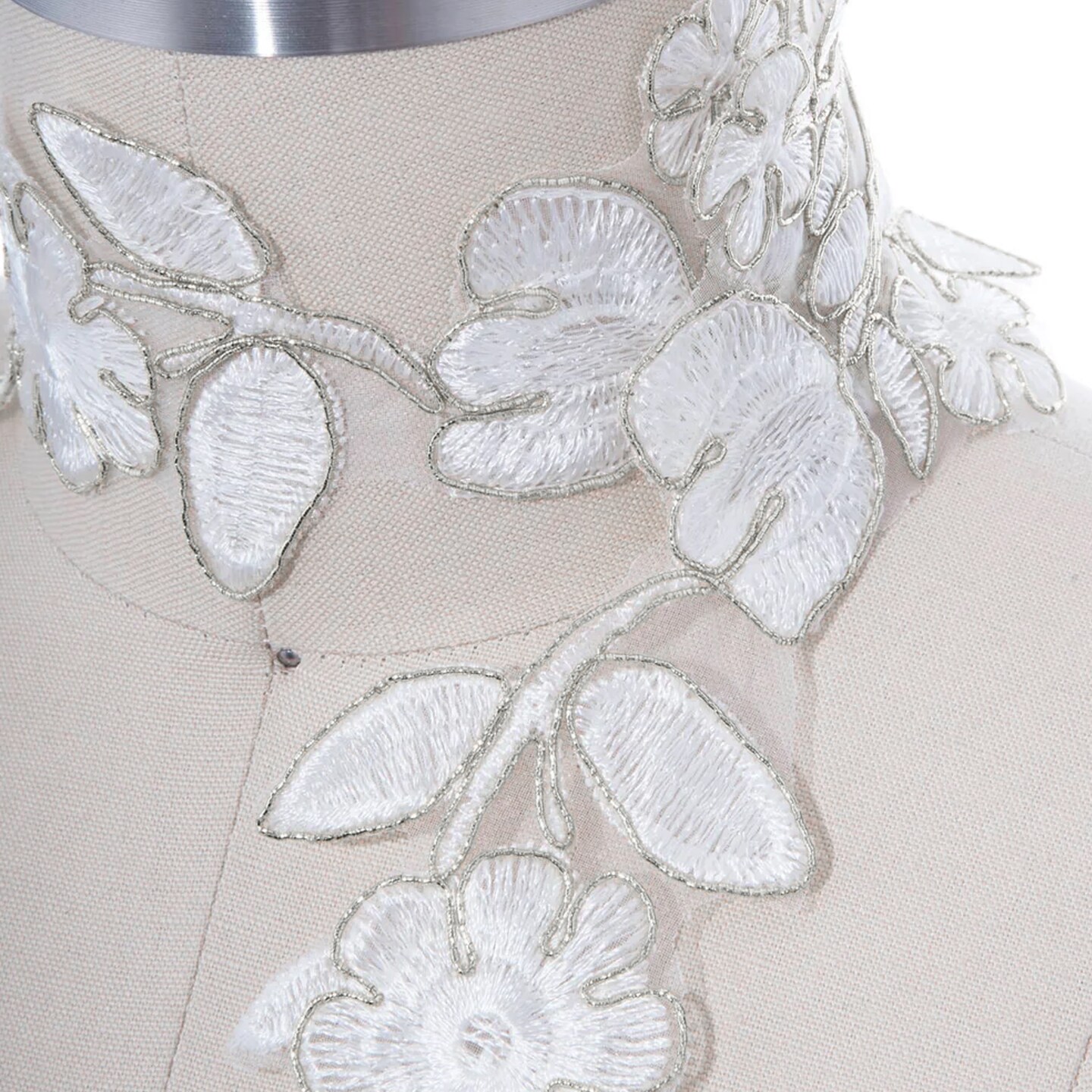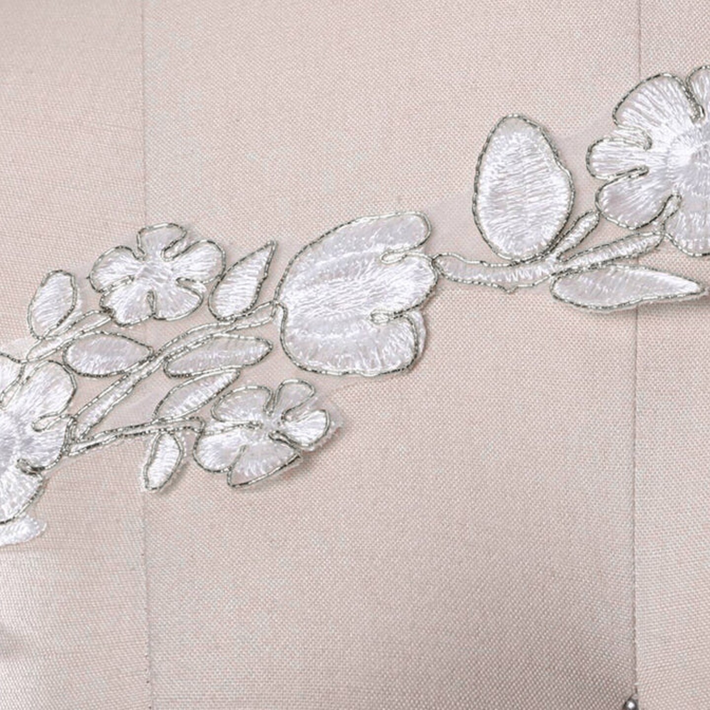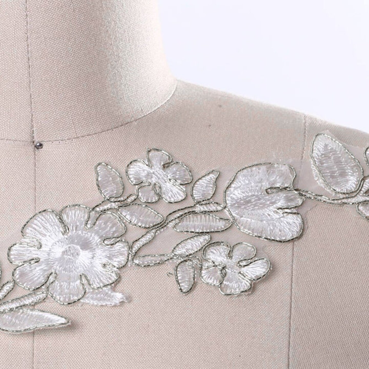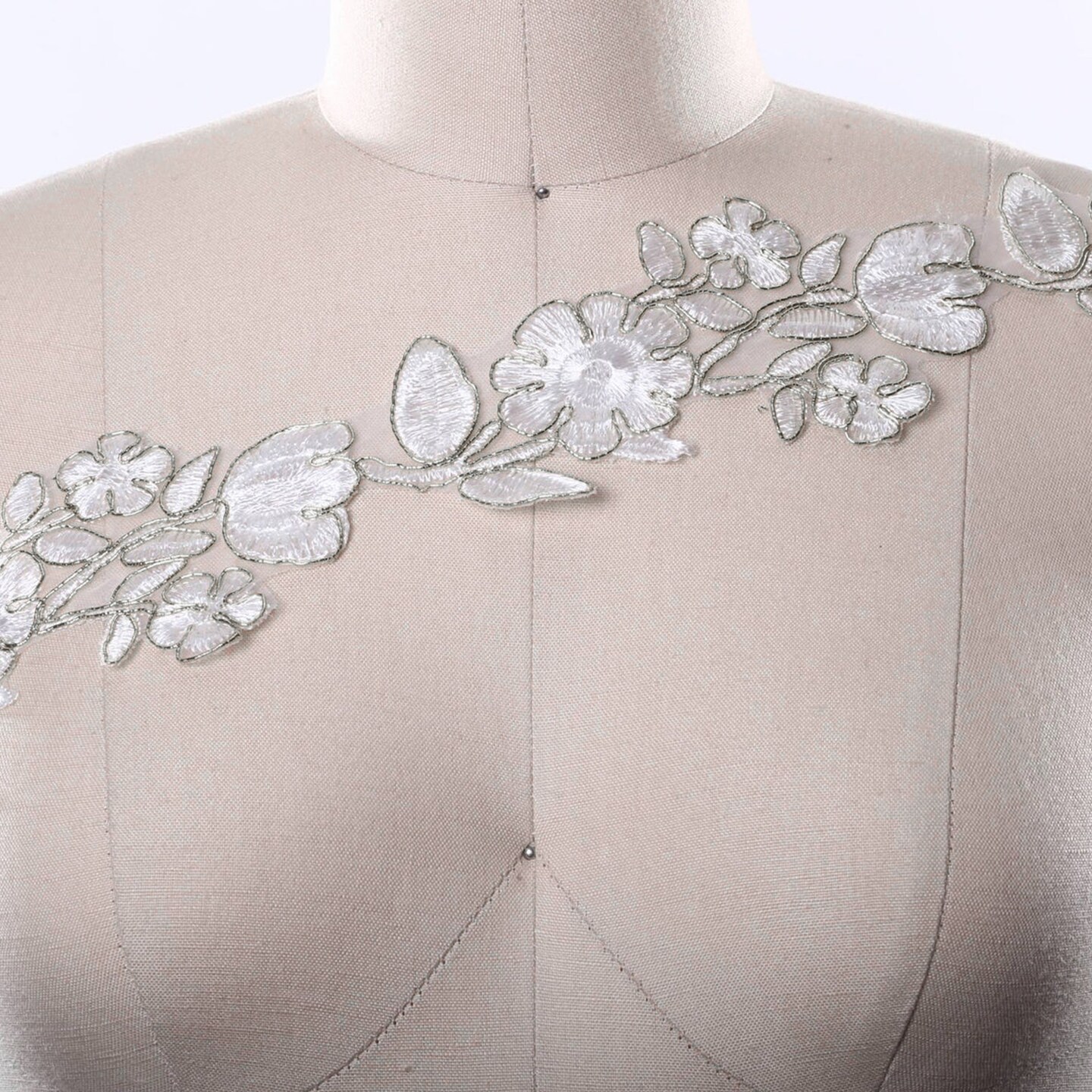 1 Yard Silver Alencon Embroidery Lace Trim With Gold Wire Embellishment Perfect For Bridal And Formal Wear