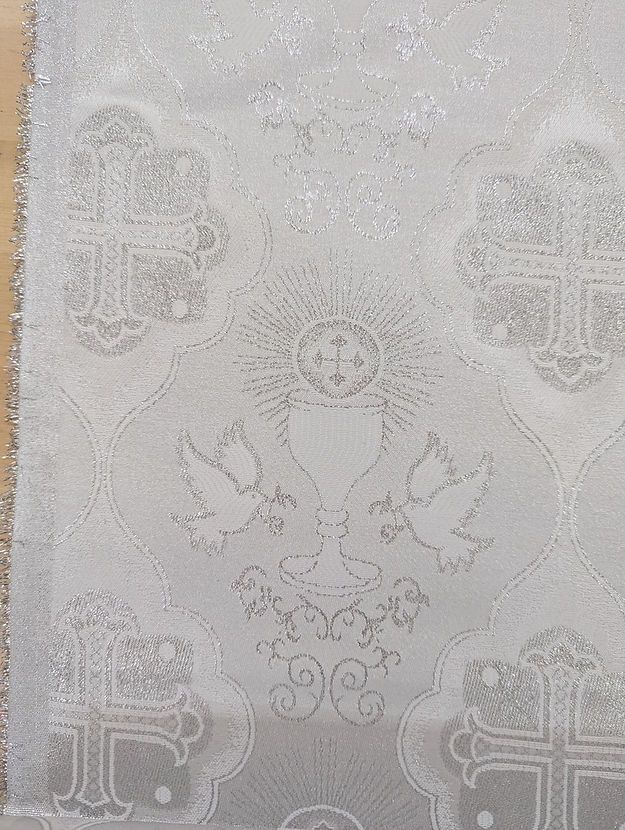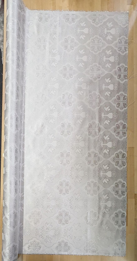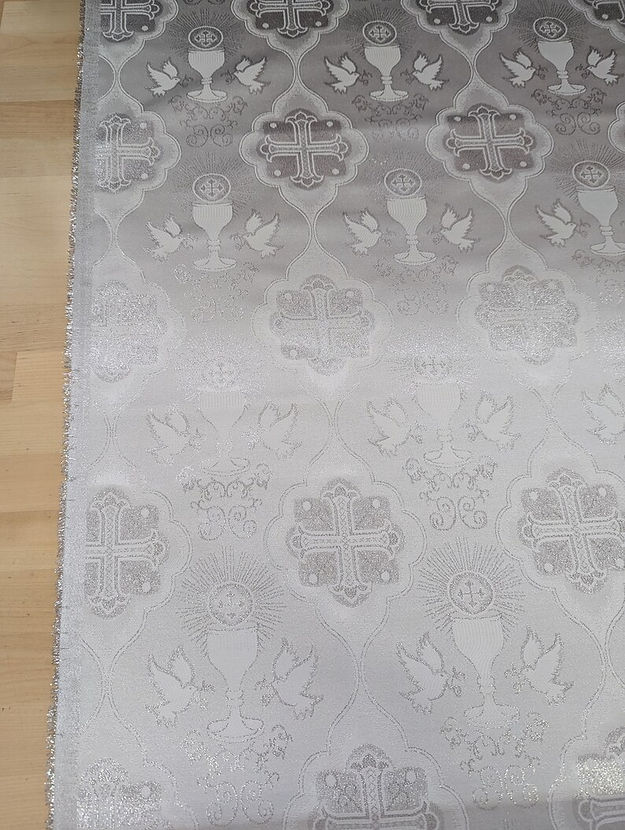 1 Yard Silver Church Metallic Cross Brocade Fabric with Shiny Jacquard Design 58/59 Inches Width