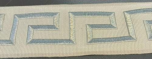 1 Yard Silver Greek Key Embroidered Decorative Trim for Upholstery, Drapery, and Border Fabric 2.1 Inch Wide