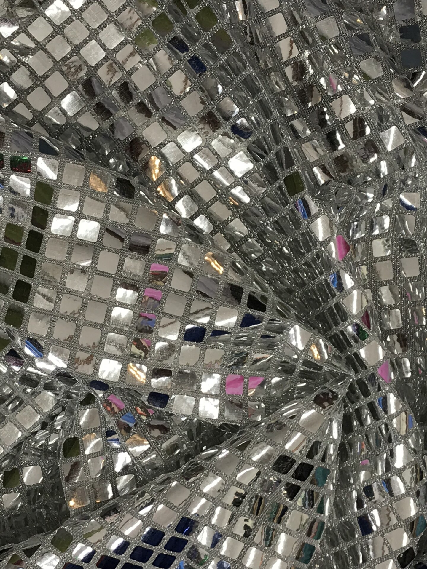 1 Yard Silver Square Foil Sequin Mesh Fabric For Stage Backdrops Parties Crafts 42″ Wide