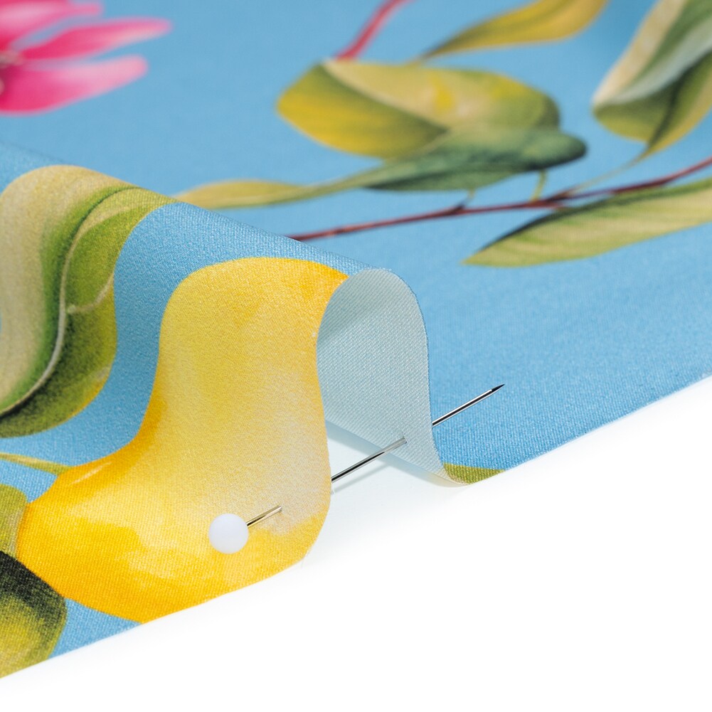 1 Yard Sky Blue Green Yellow Blossoming Lemon Tree Silk Charmeuse 53 inch Width