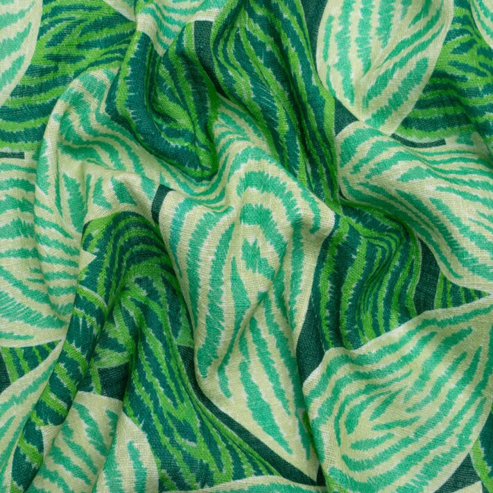 1 Yard Slubbed Gauzy Cotton Woven Print - Green Simple Leaves Fabric 57 inch