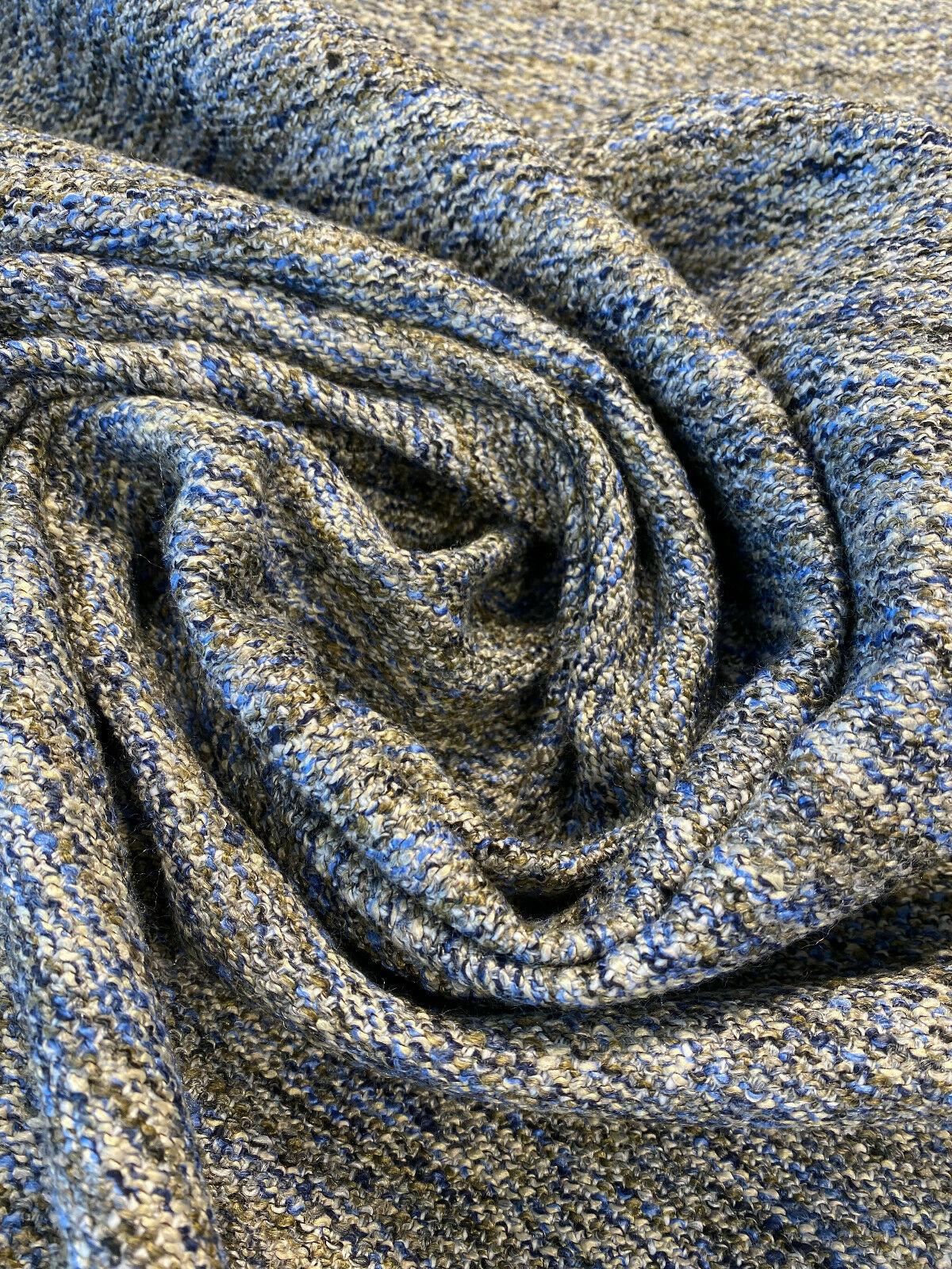 1 Yard Soft Chenille Upholstery Fabric Blue Off White Brown 56" Width 100% Polyester