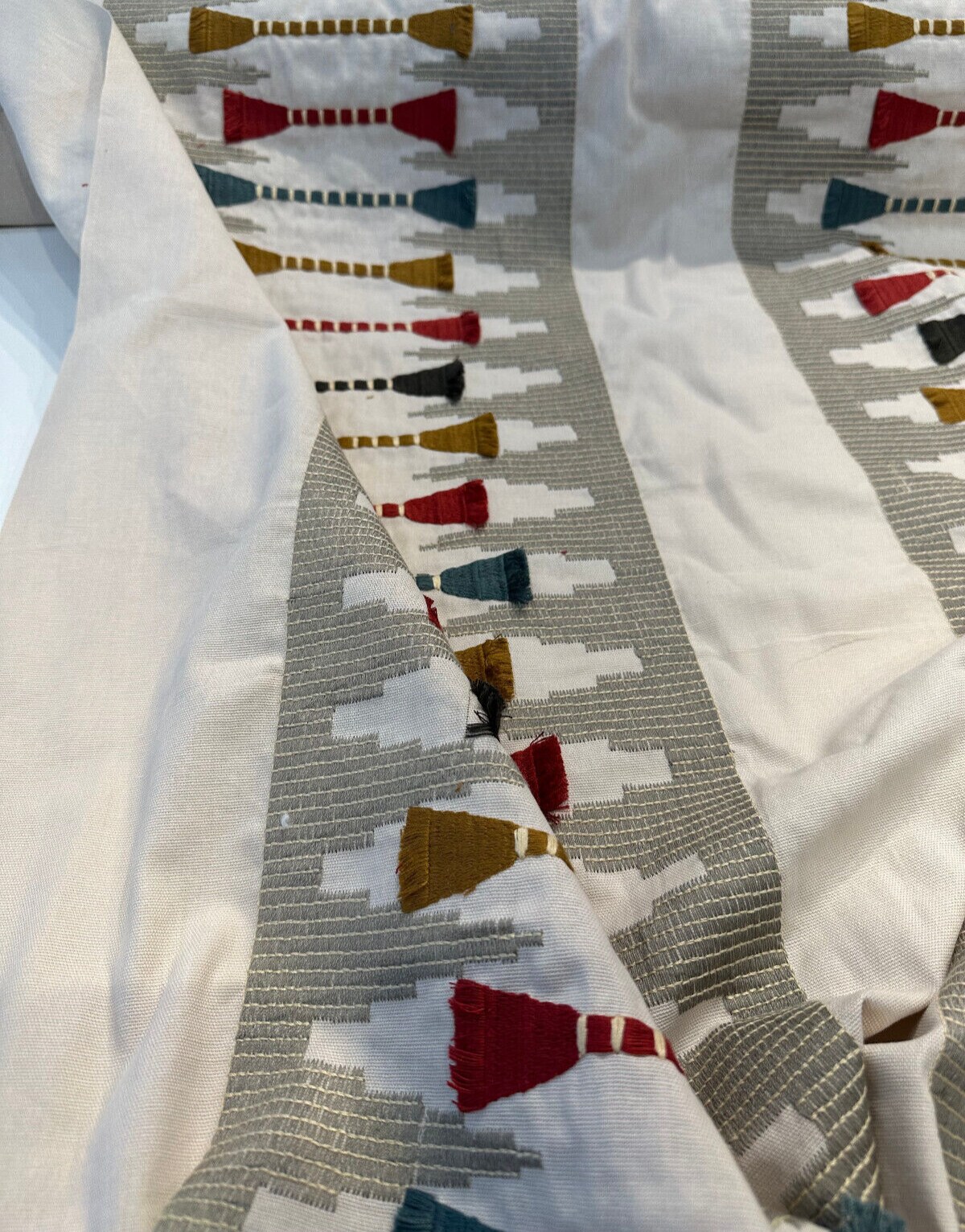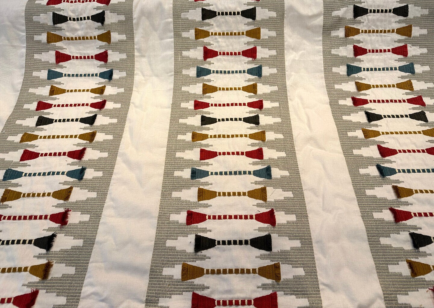 1 Yard Southwestern Embroidered Upholstery Fabric Khaki Beige Tassel Pattern 100% Cotton 57 Inch Width
