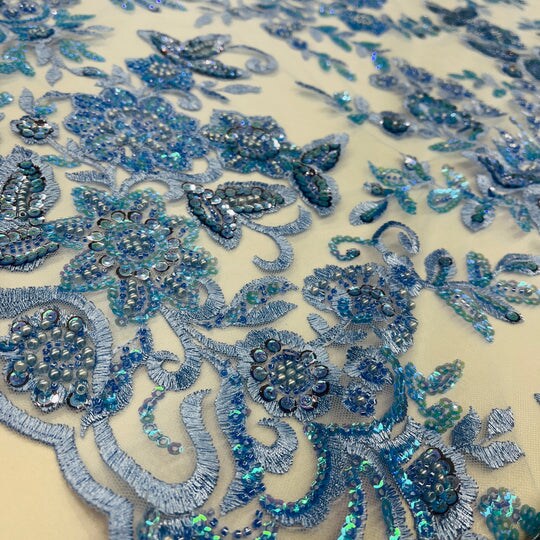 1 Yard Sparkling Beaded and Sequined Lace Fabric Embroidered on Polyester Net Mesh