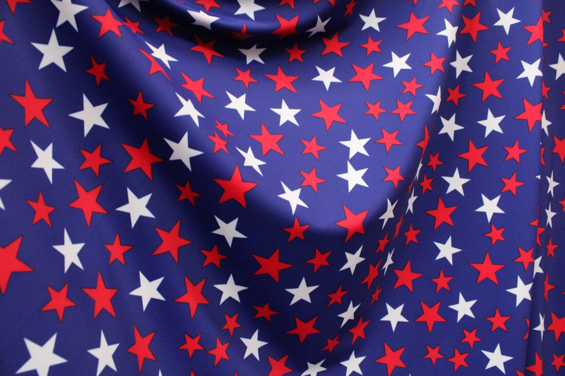 1 Yard Stars and Stripes Inspired Stretch Fabric for Performance Swimwear Dance Costumes and Activewear 58" x 60" Inch Width