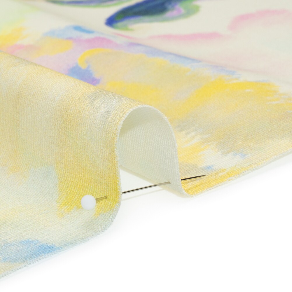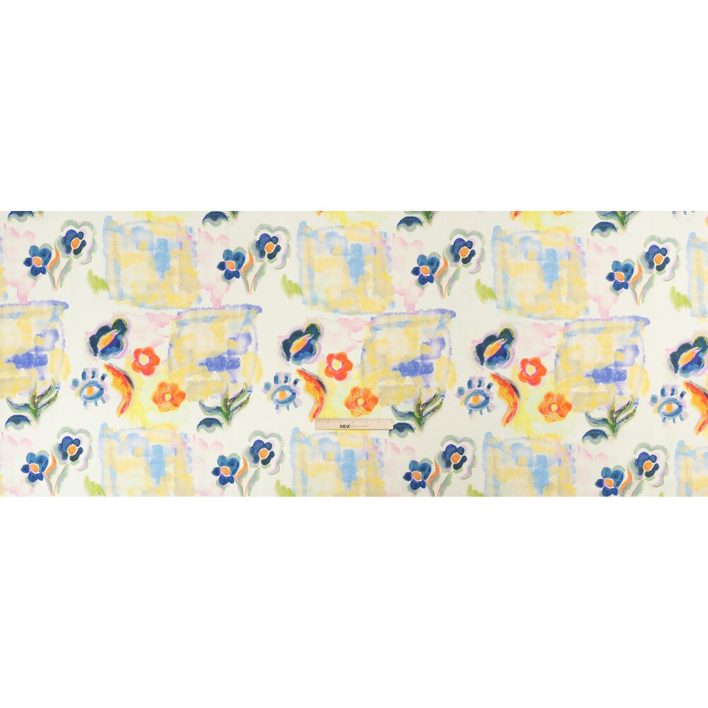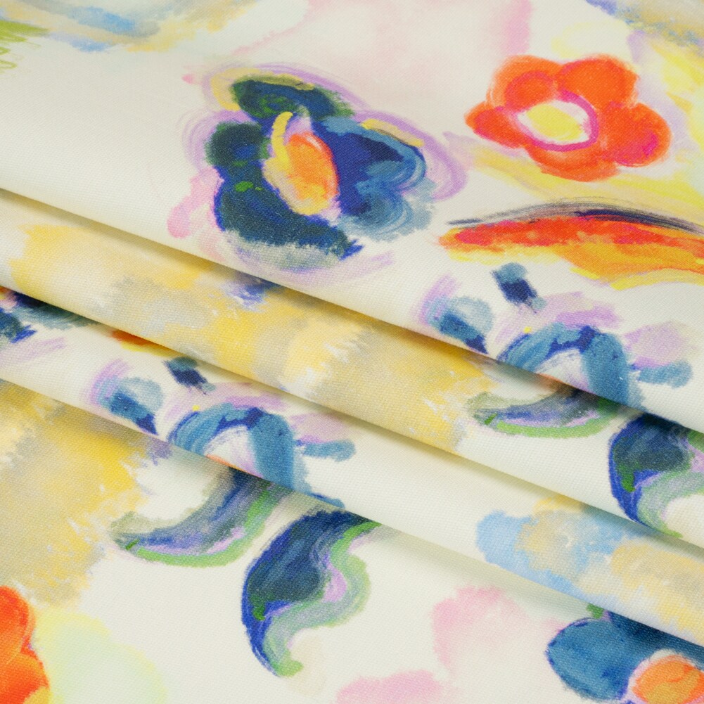 1 Yard Stretch Cotton Canvas Print White and Yellow Painterly Floral Step One