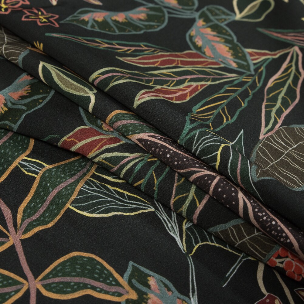 1 Yard Stretch Cotton Sateen Black and Green Foliage Mystery of Renewal Print Fabric
