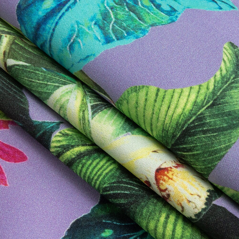 1 Yard Stretch Cotton Sateen Lavender Florals and Fauna Jungle Inspired Print Fabric