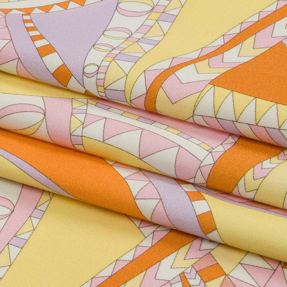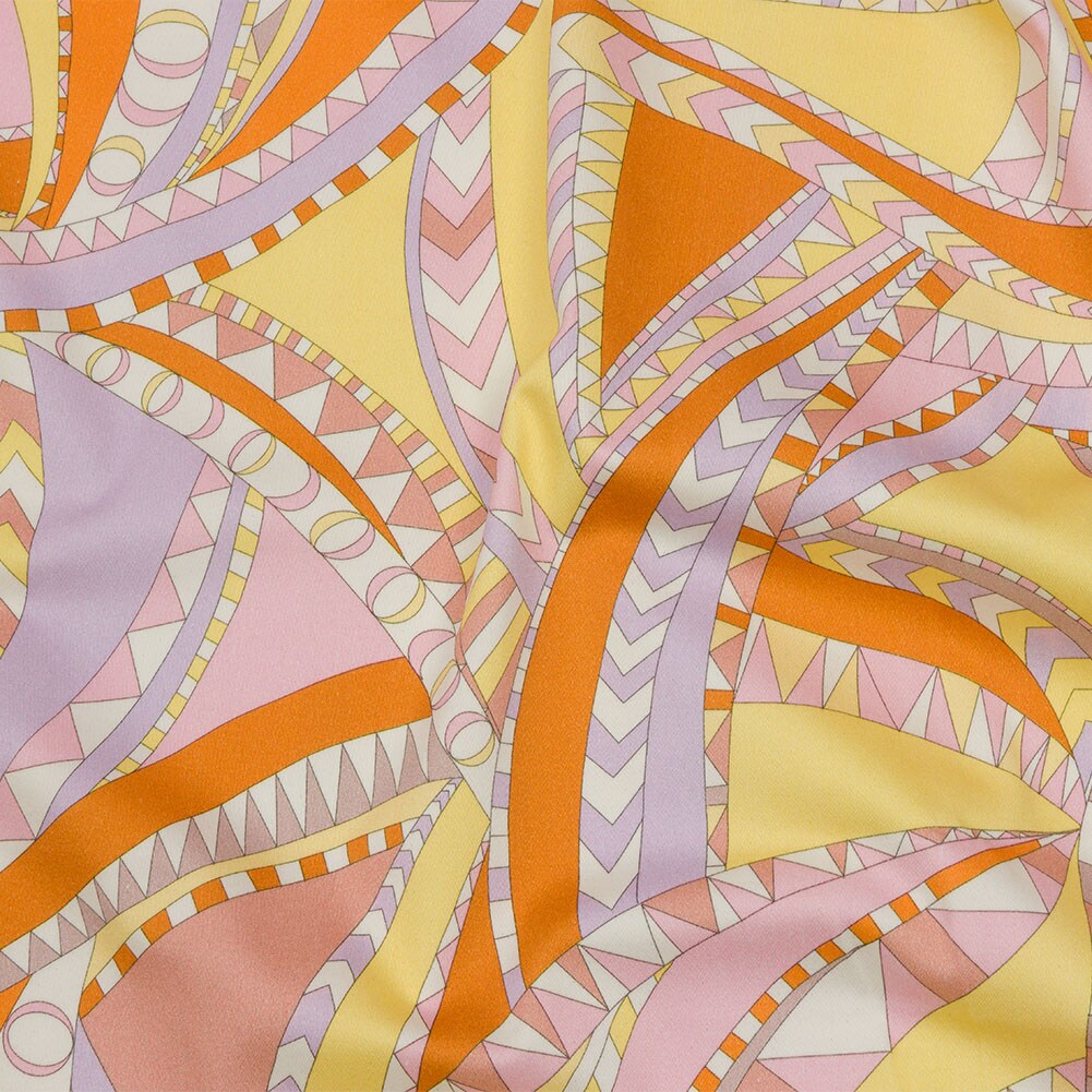 1 Yard Stretch Cotton Sateen Pink Orange and Yellow Geometric Abstract Lizard Leap Print Fabric