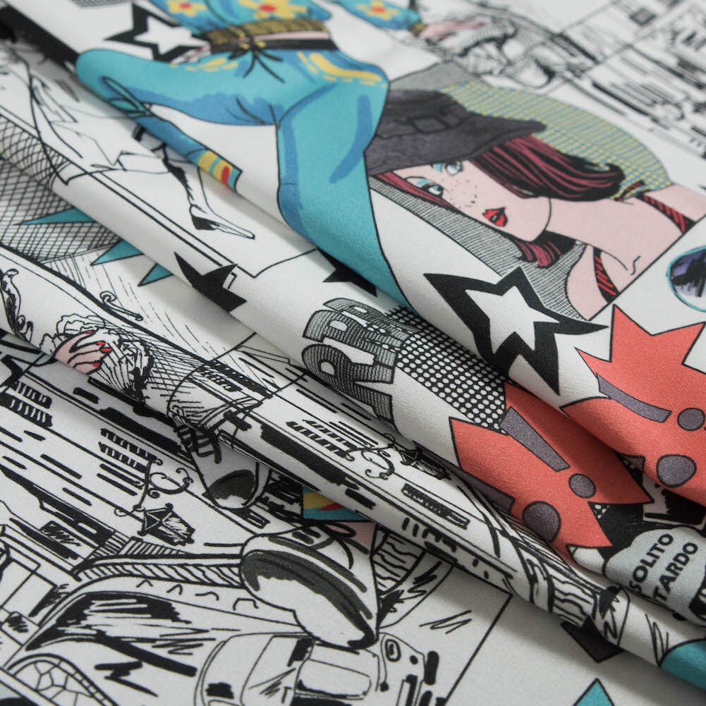 1 Yard Stretch Cotton Sateen White Pop Icons White Fashionably Late Print Comic Collection