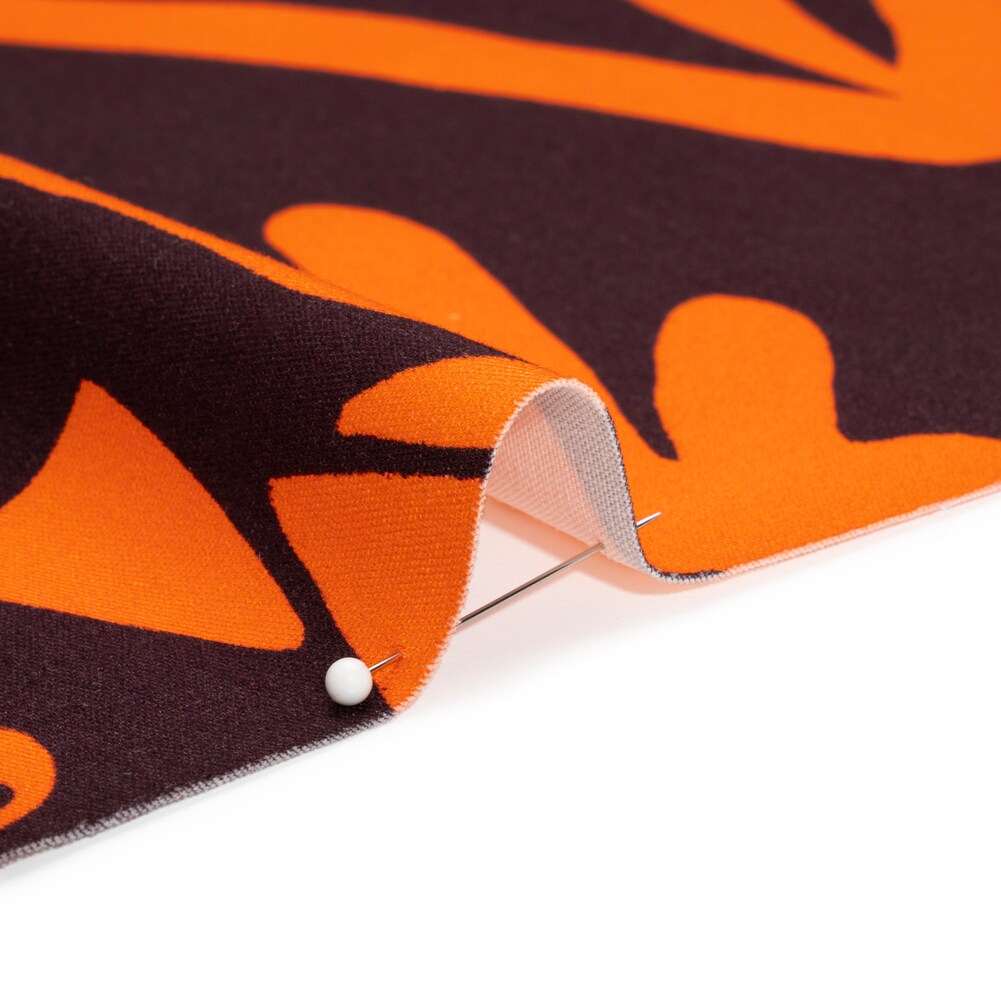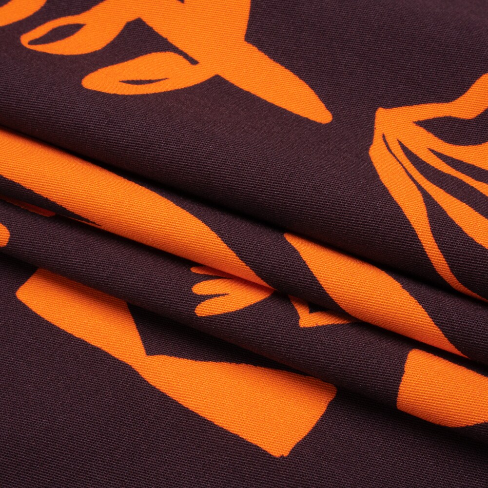 1 Yard Stretch Cotton Twill Print Orange and Purple Floral Drawing Delight Fabric