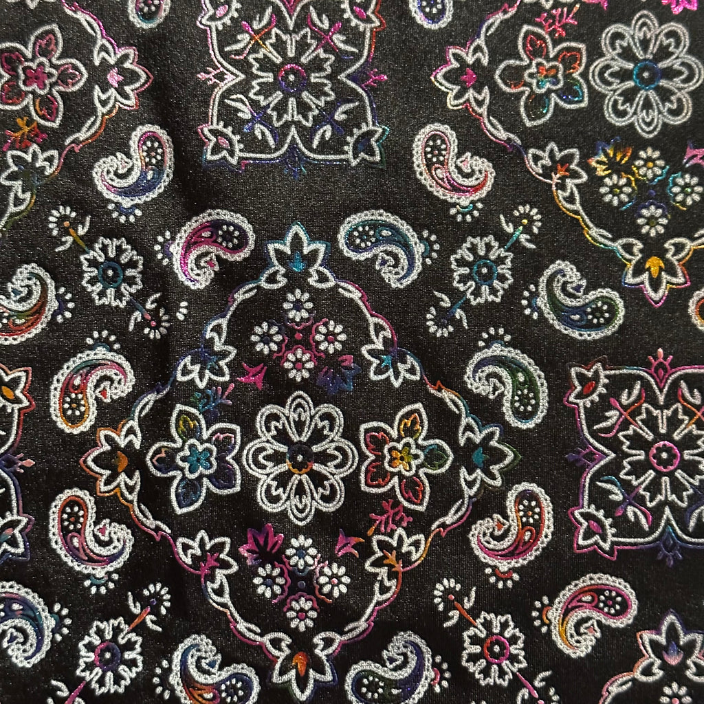 1 Yard Stretch Nylon Spandex Fabric with Bandana Design Foil for Dancewear Swimwear 60" Width