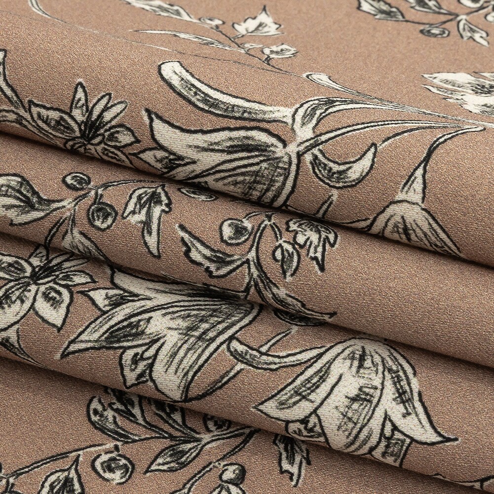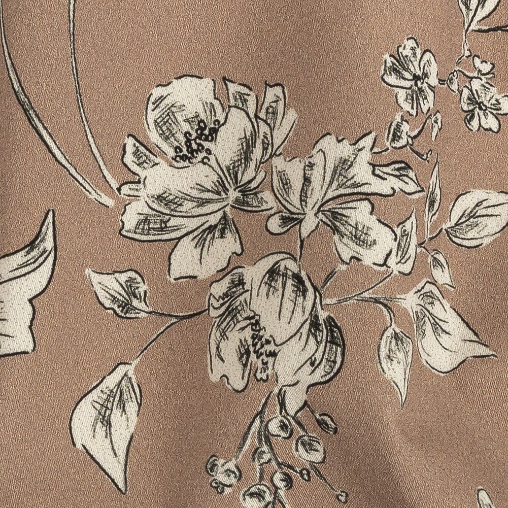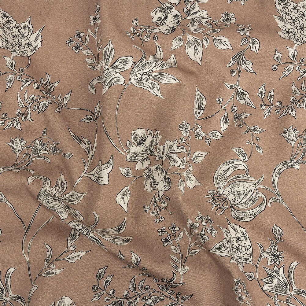 1 Yard Tan Organic Delineation Cotton Sateen Stretch Fabric