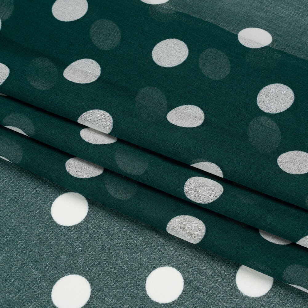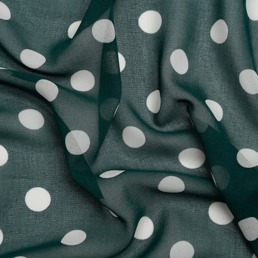 1 Yard Teal and White Polka Dot Nylon Georgette Lightweight Fabric for Dressmaking 59 inch Width